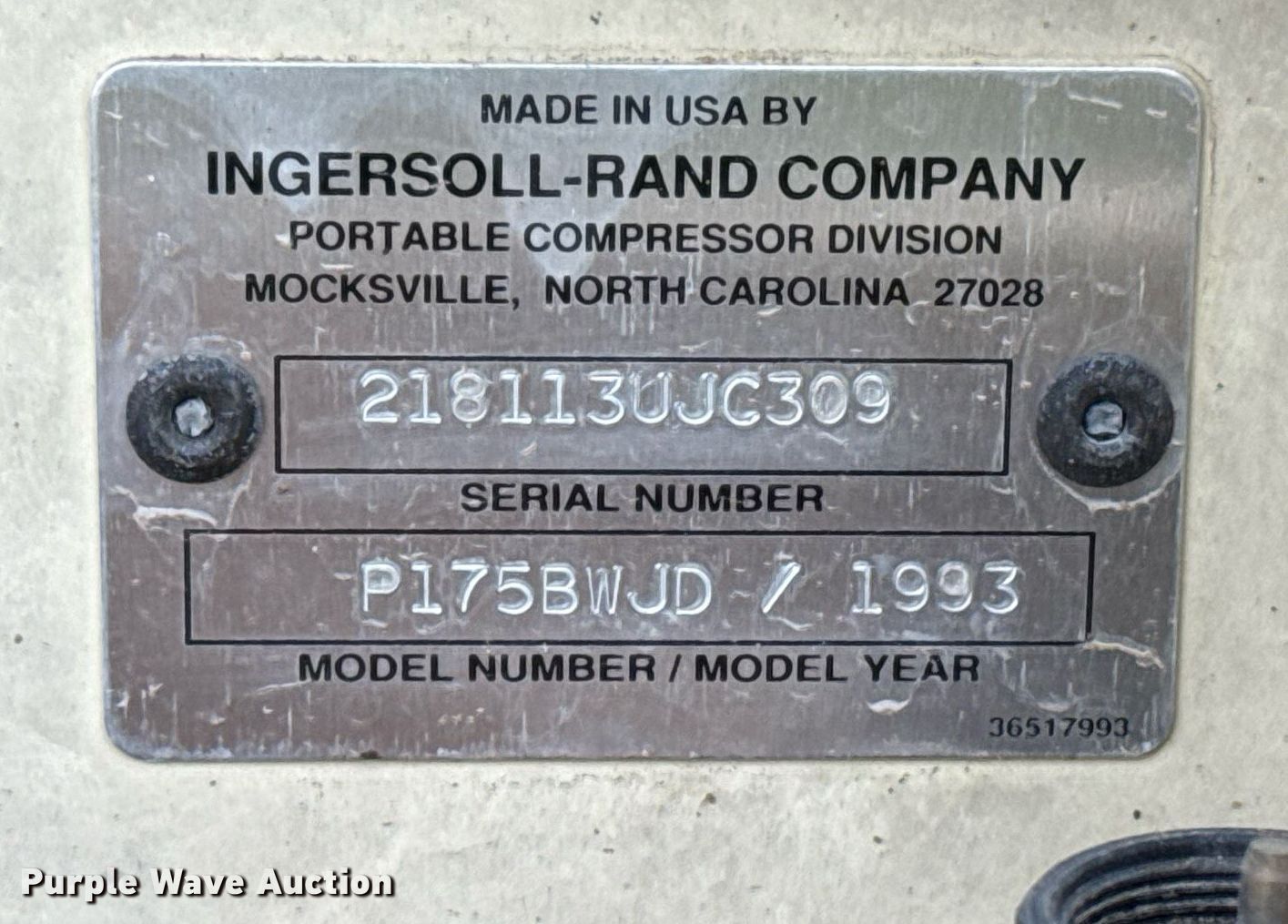 1993 Ingersoll Rand P175BWJD air compressor | SOLD! June 19 Construction Equipment Auction