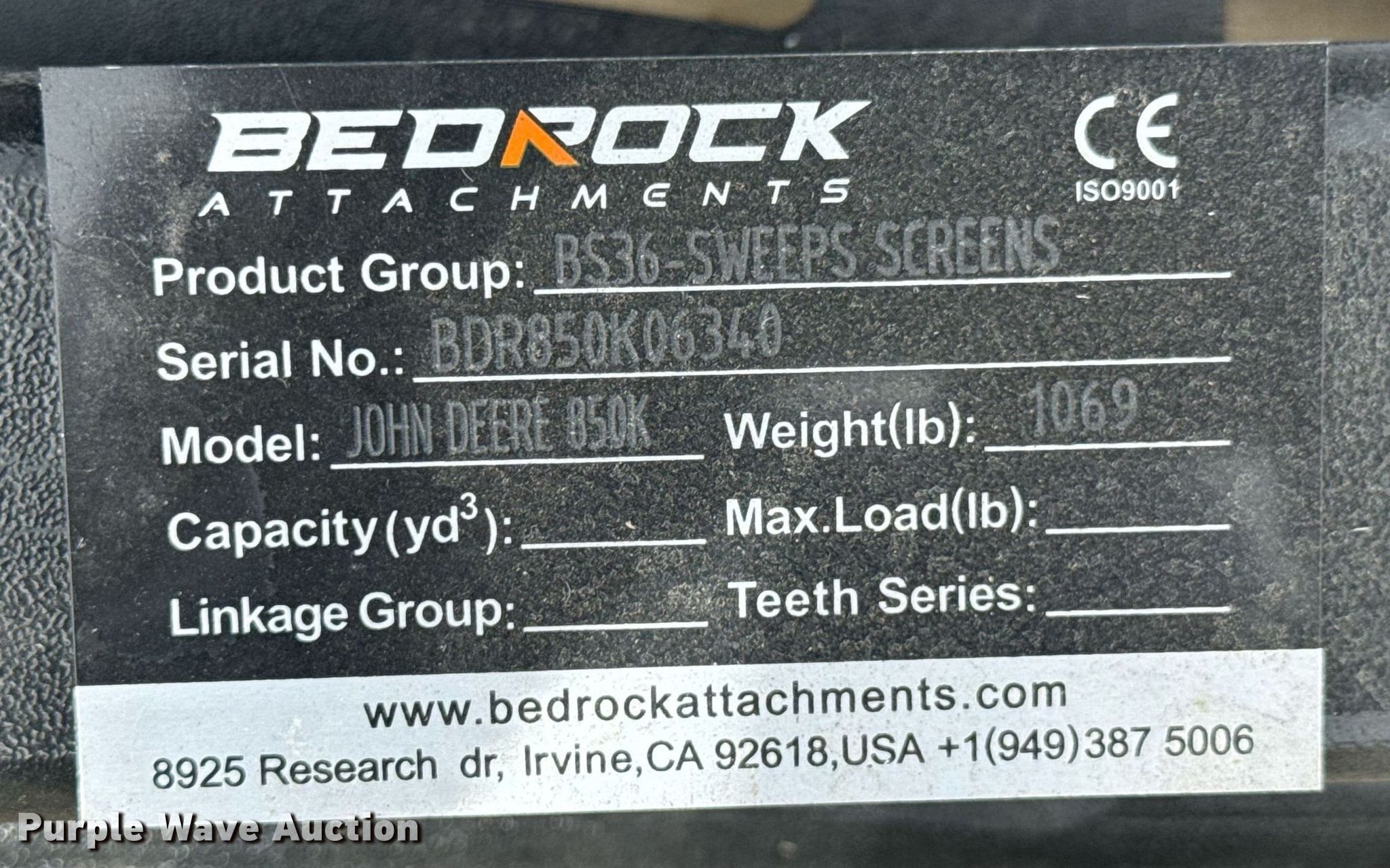 Purple Wave is selling a used Crawler Attach. in Kansas. This item is a Bedrock Attachments BS36 dozer attachments with the following: Serial: BDR850K06340