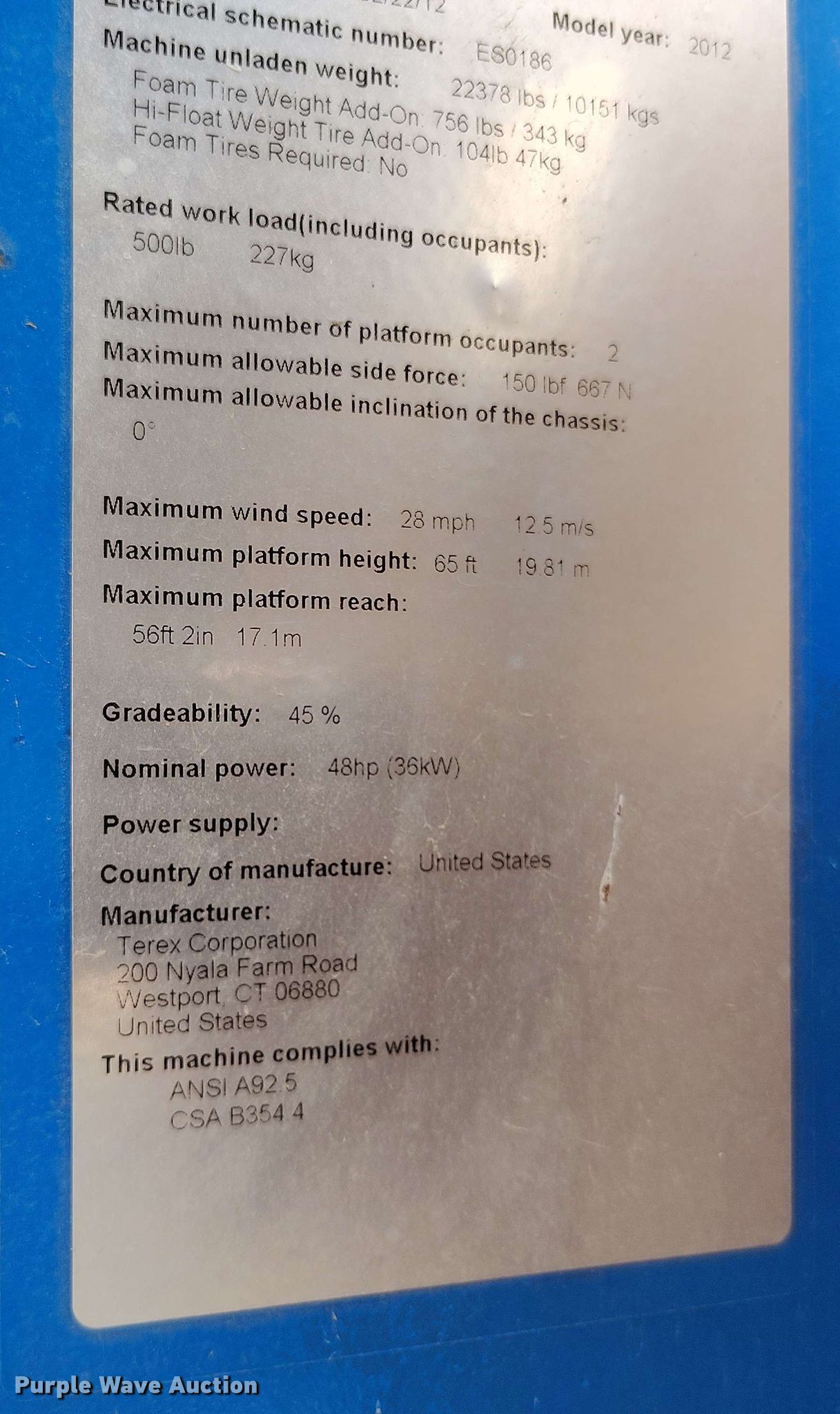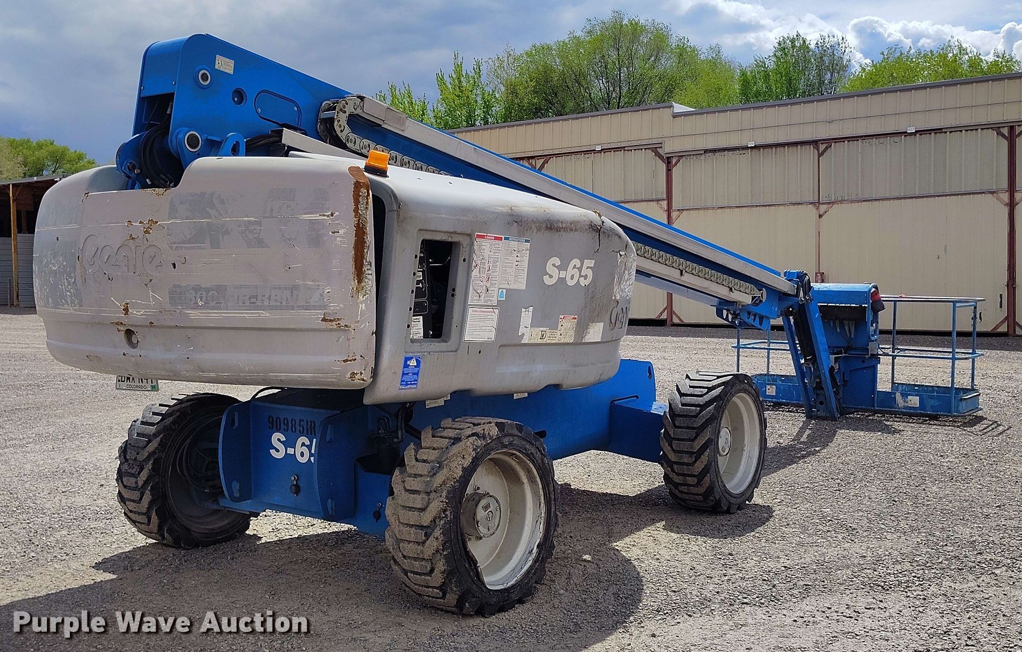 Purple Wave is selling a used Boom Lift in Colorado. This item is a 2012 Genie S65 boom lift with the following: Hours: 5,933 on meter, Serial: S6013-23313