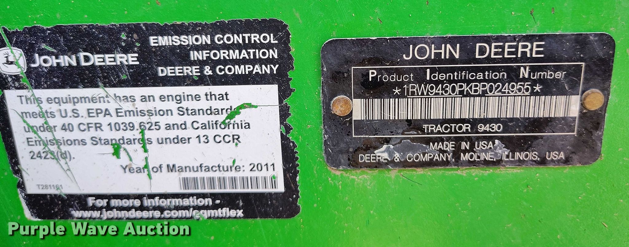 Purple Wave is selling a used Articulated 4-Wheel Drive Tractor in Colorado. This item is a 2010 John Deere 9430 4WD tractor with the following: Hours: 9,865 on meter, Serial: 1RW9430PKBP024955, Unit #: T0-7
