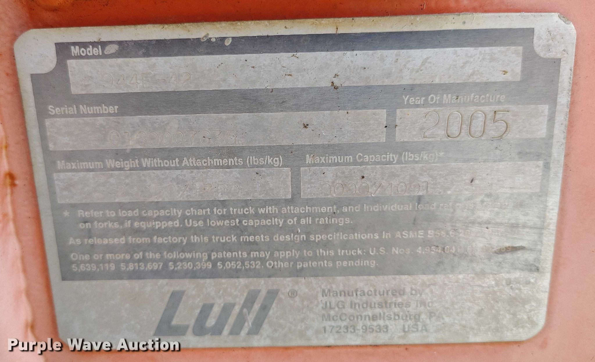 Purple Wave is selling a used Telehandler in Colorado. This item is a 2005 Lull 944E-42 telehandler with the following: Hours: 6,900 on meter, Serial: 0160007635