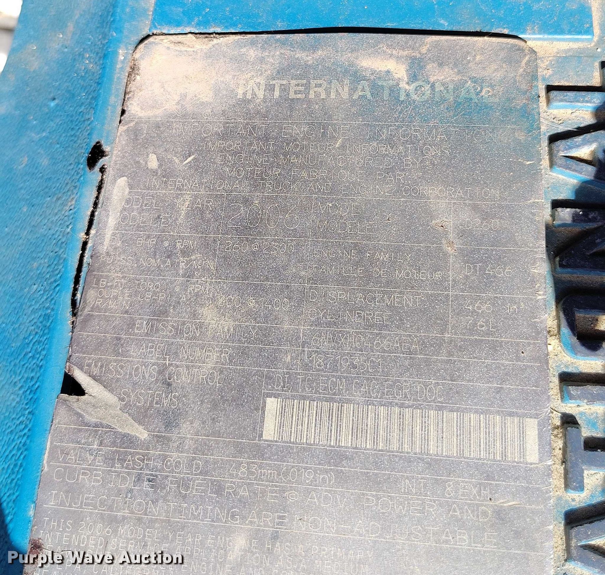 2006 International 7400 water truck. Miles: 128,081 on odometer, Hours: 13,457 on meter, VIN: 1HTWJAAT76J342573. Engine International DT466, Displacement: 7.6L, Cylinders: 6, Fuel type: Diesel. Transmission Allison, Automatic. Chassis Six wheel drive, Axles: Tandem, Differential lock: Inter-axle, Suspension: Spring over walking beam, Brakes: Air, PTO. Interior AC, Heat, Cruise control. Features Bed / tank Dohrn Trucks L.L.C. HD6SRHRNST-114, Capacity: 4,000 gallons, 16' L x 99" W, Spray bar: Front, Rear, Side discharge, Hose reel, Top fill. Tires Front: 315/80R22.5, Rear: 11R22.5. Notes Engine replaced March 2023, Transmission rebuilt April 2025. View repairs. Colorado title. Title distribution may be delayed up to 14 days from verification of funds. Spriggs Excavation, INC. Aztec, NM 87410