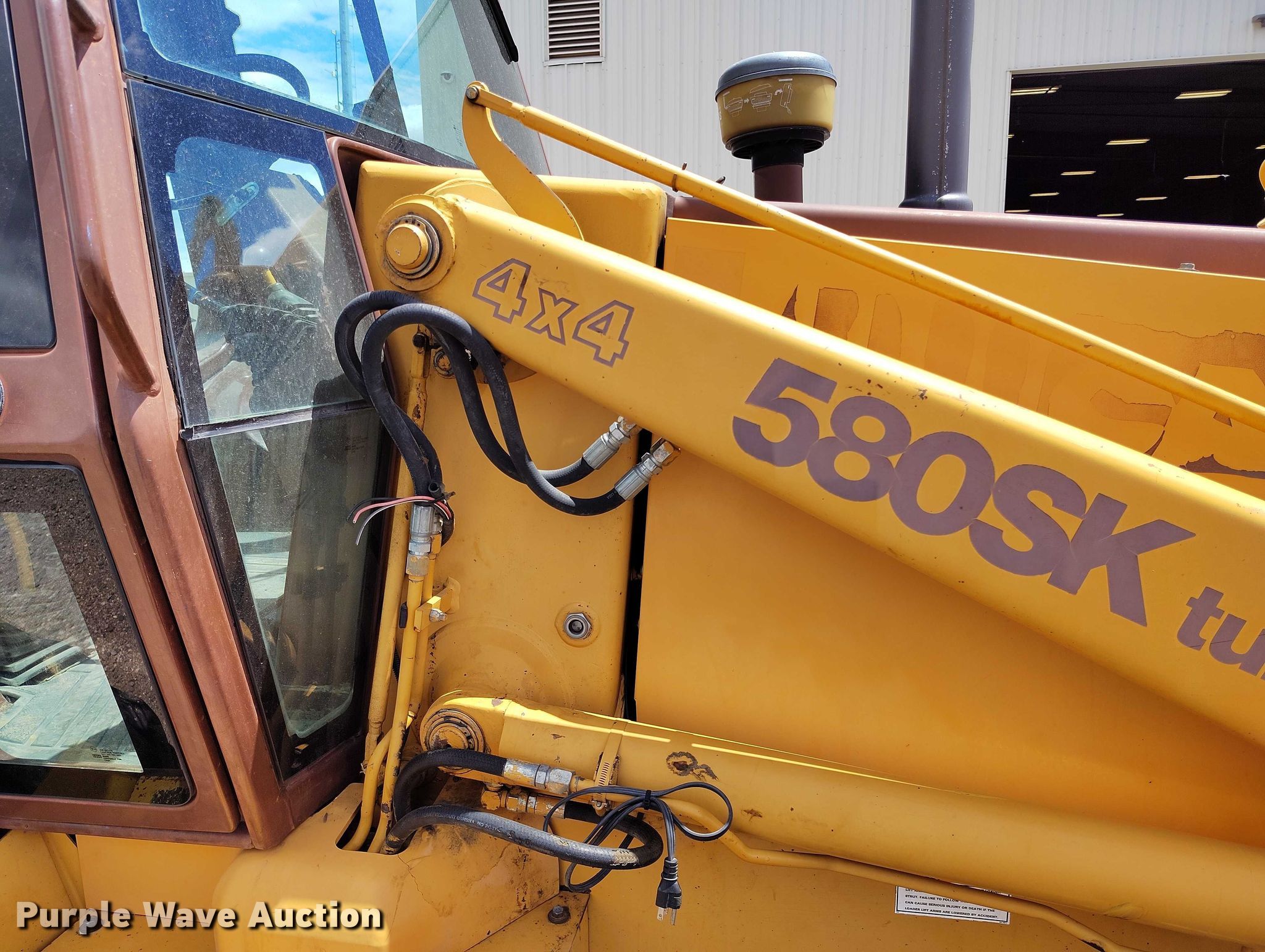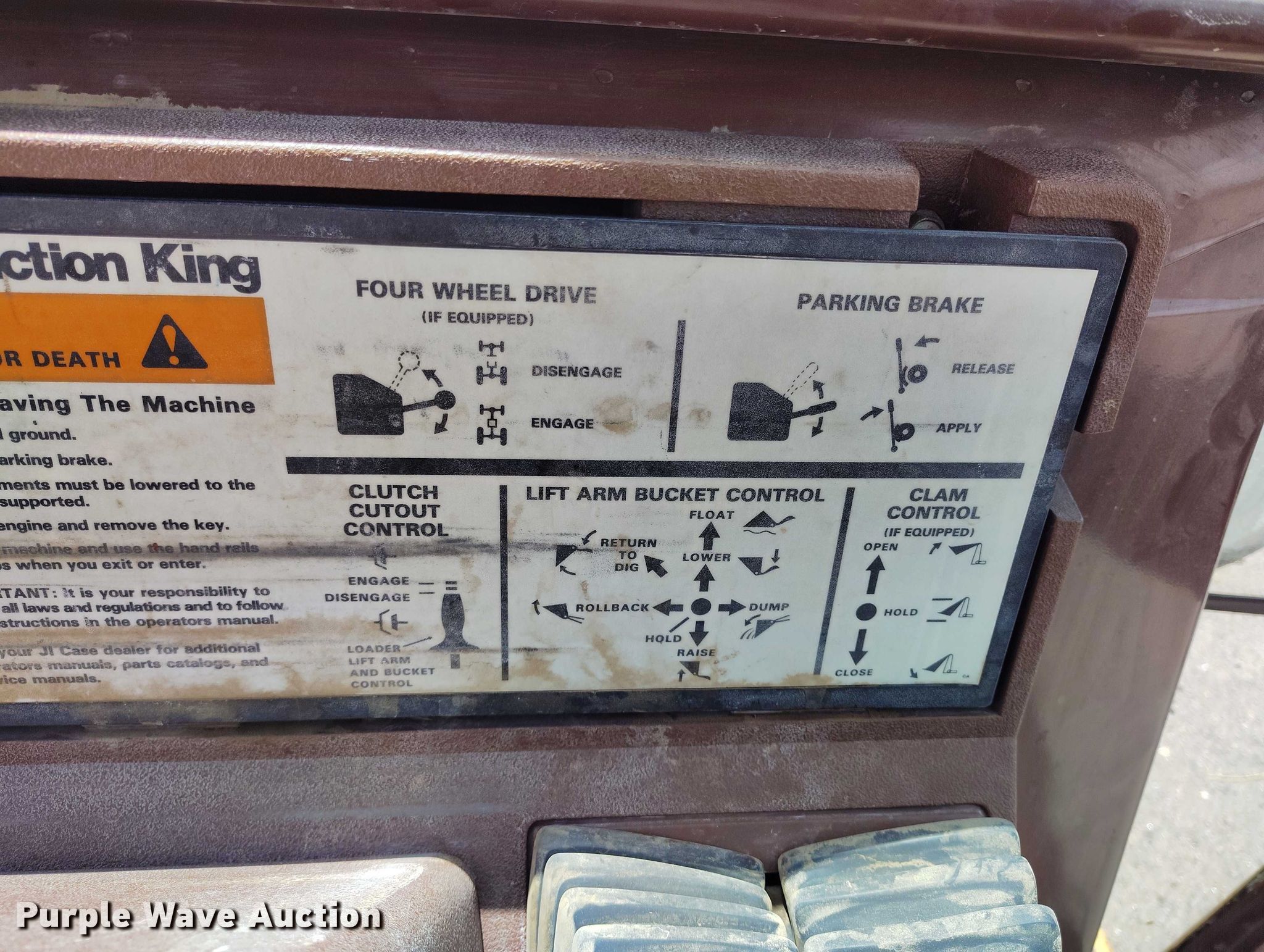 1994 Case 580 Super K backhoe. Hours: 3,839 on meter, Serial: JJG0180261. Engine Case 4T-390, Serial: 44951855, Cylinders: 4, Fuel type: Diesel. Transmission Shuttle shift, 4F - 4R. Chassis Four wheel drive. Operators station Enclosed cab, Heat, Backhoe controls: Wobble stick / two stick. Features Loader Width: 81", Cutting edge: Bolt-on, Backhoe Extendable stick, Width: 23", Teeth: 5. Tires Front: 12-16.6NHS, Rear: 19.5L-24. Y-W Electric Association, Inc.. Akron, CO 80720
