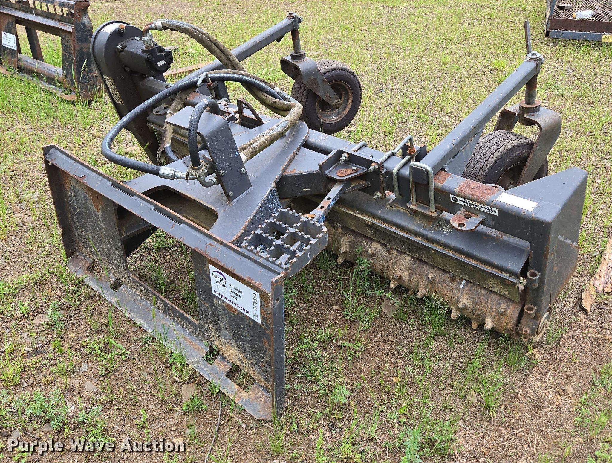 Harley M6M skid steer power rake. Serial: 1120400, Width: 72". Notes Hydraulic leak. Estate of Mike Haughton. Mountainburg, AR 72946