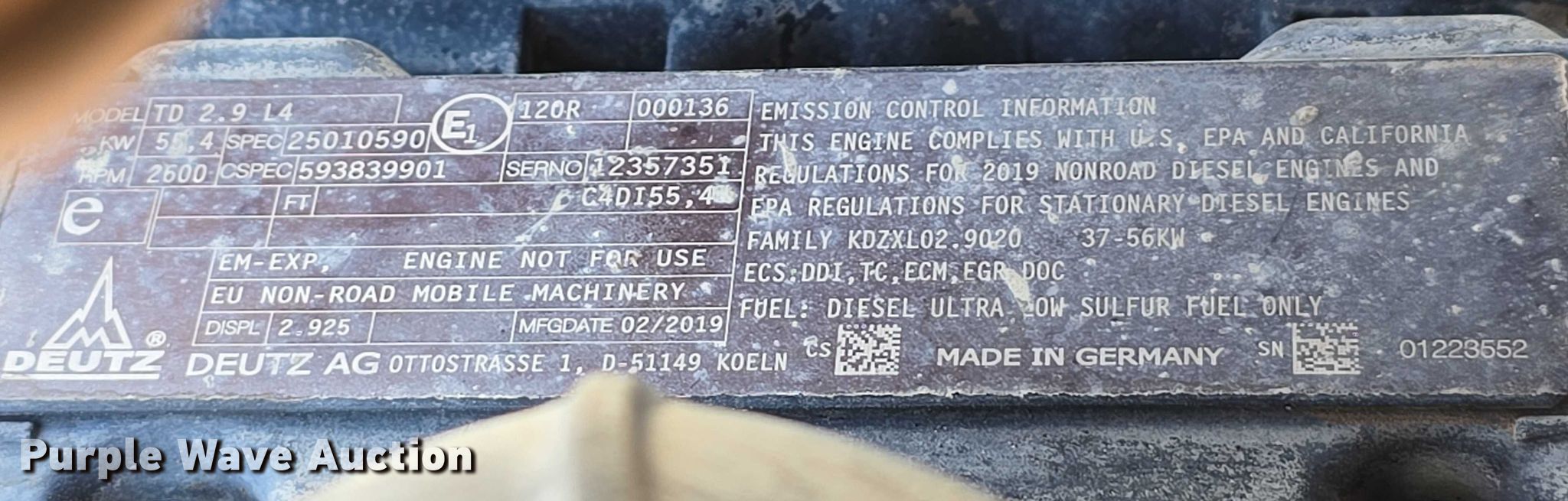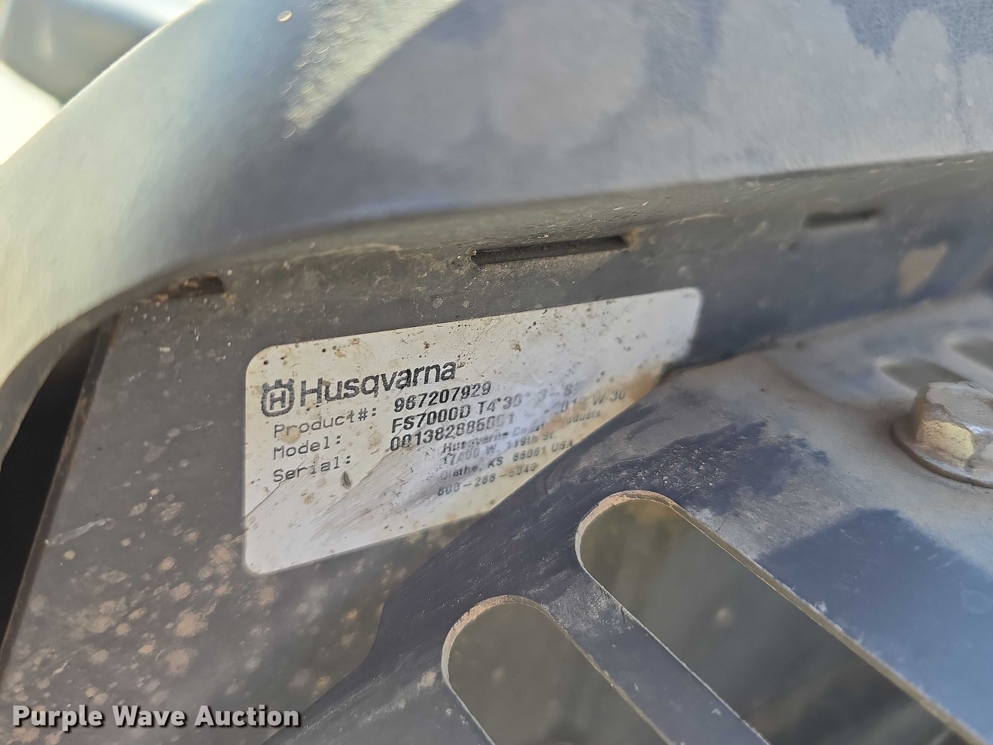 2019 Husqvarna FS7000D concrete saw. Hours: 802 on meter, Serial: 001382885001. Engine Deutz TD 2.9 L4, Serial: 12357351, Displacement: 2.9L, Cylinders: 4, Fuel type: Diesel, kW: 55.4. Transmission Hydrostatic. Features Blade capacity: 30". Ten Point Construction Co., Inc.. Denison, IA 51442