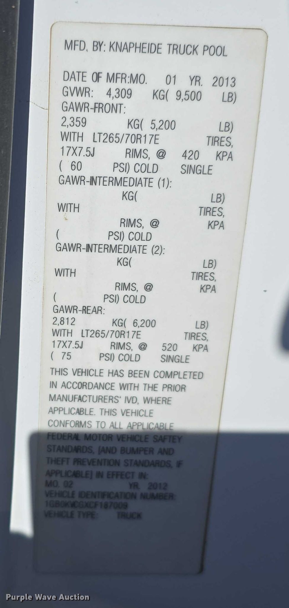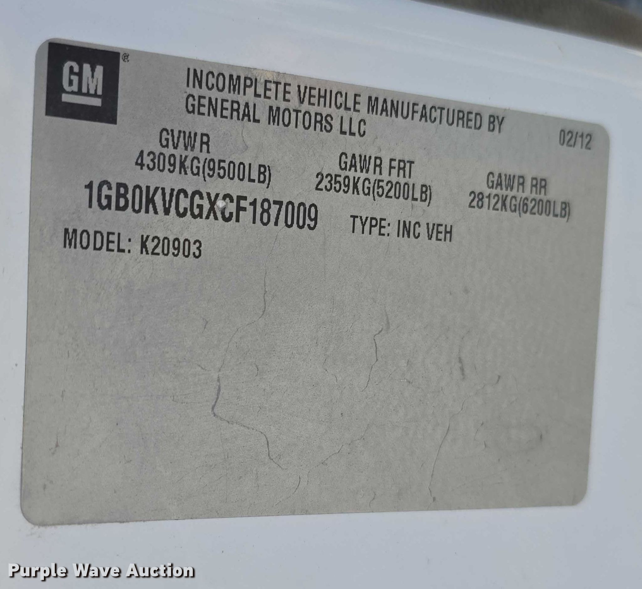 - VIN: 1GB0KVCGXCF187009