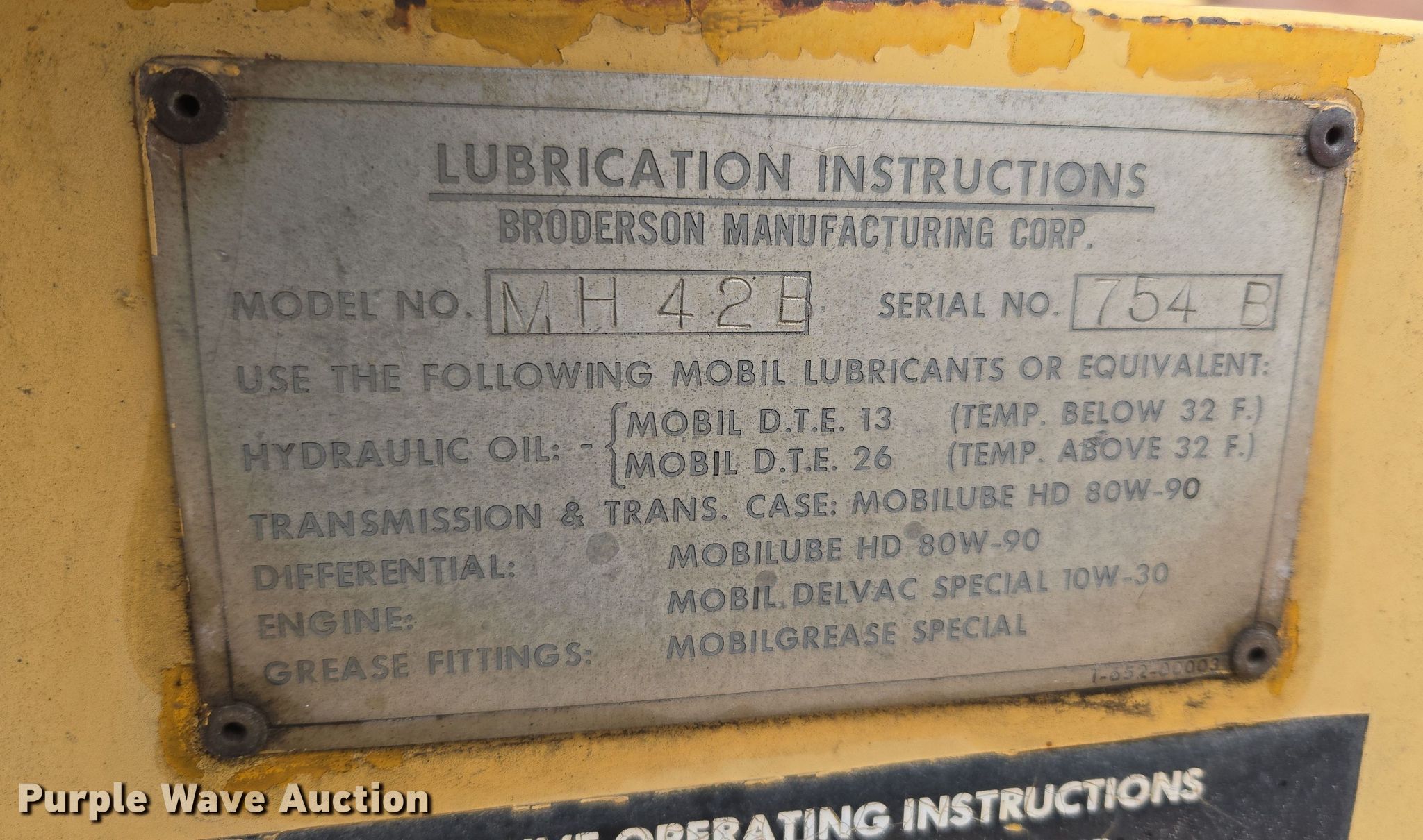 Purple Wave is selling a used Breaker or Hammer in South Dakota. This item is a Broderson MH42B drop hammer with the following: Hours: 650 on meter, Serial: 754B