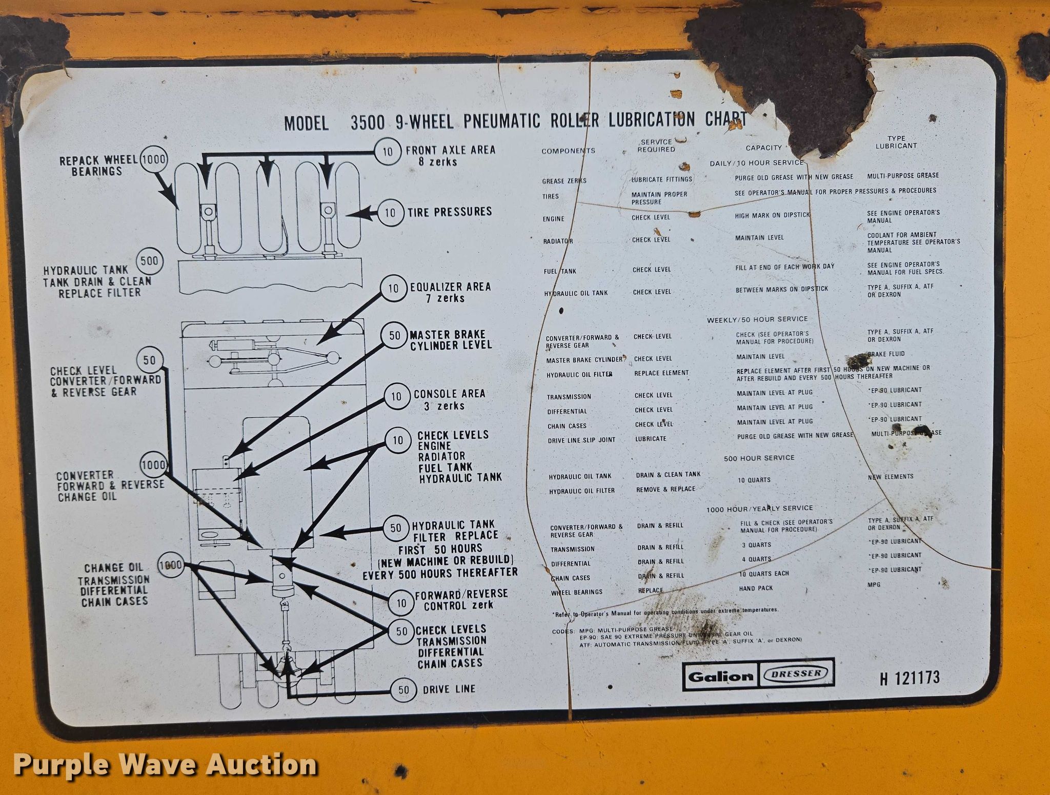 Purple Wave is selling a used Pneumatic Roller in South Dakota. This item is a 1974 Galion 3500 pneumatic roller with the following: Hours: 1,375 on meter, Actual hours: Unknown, Serial: 9PC-LW-12-6-5931