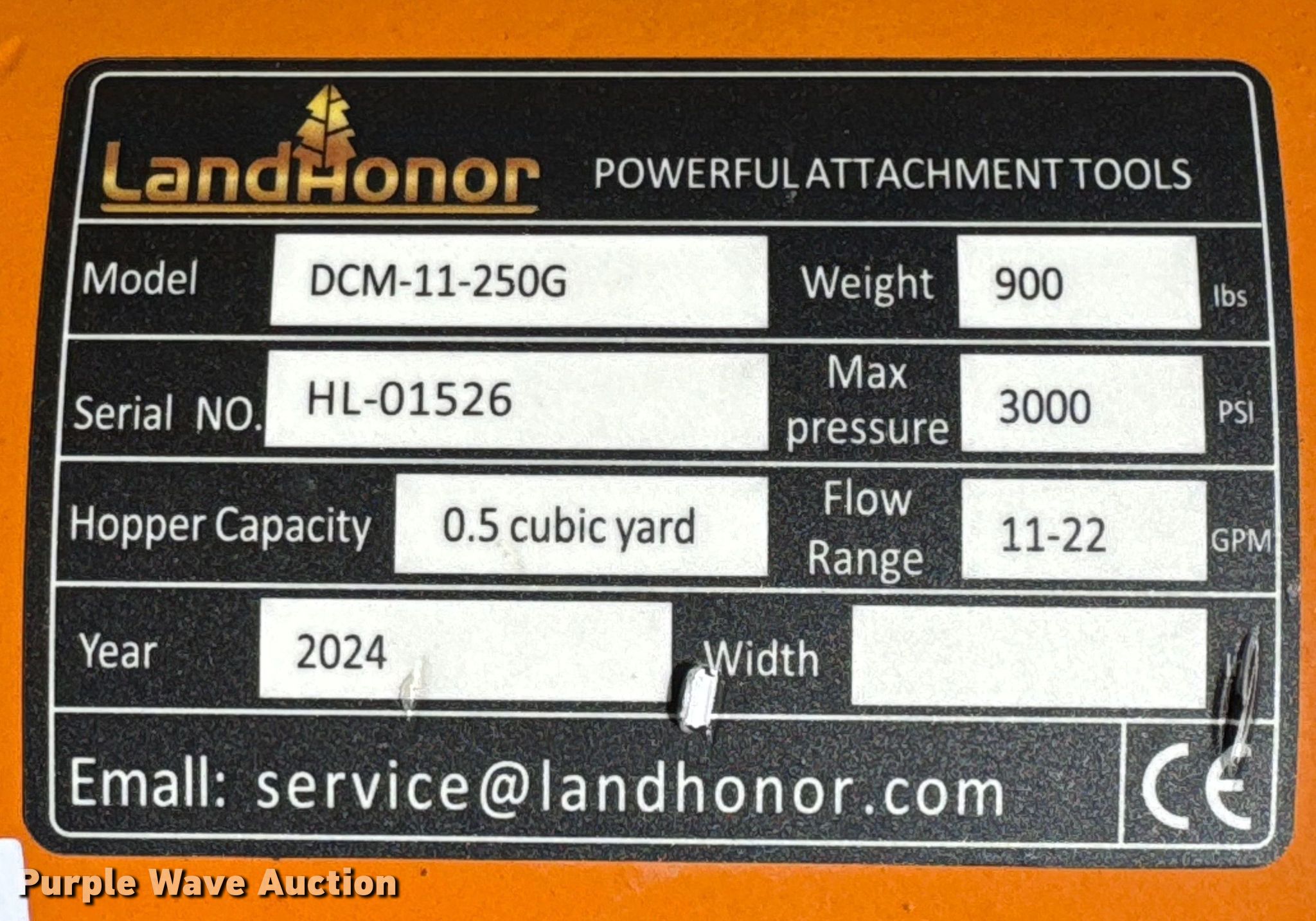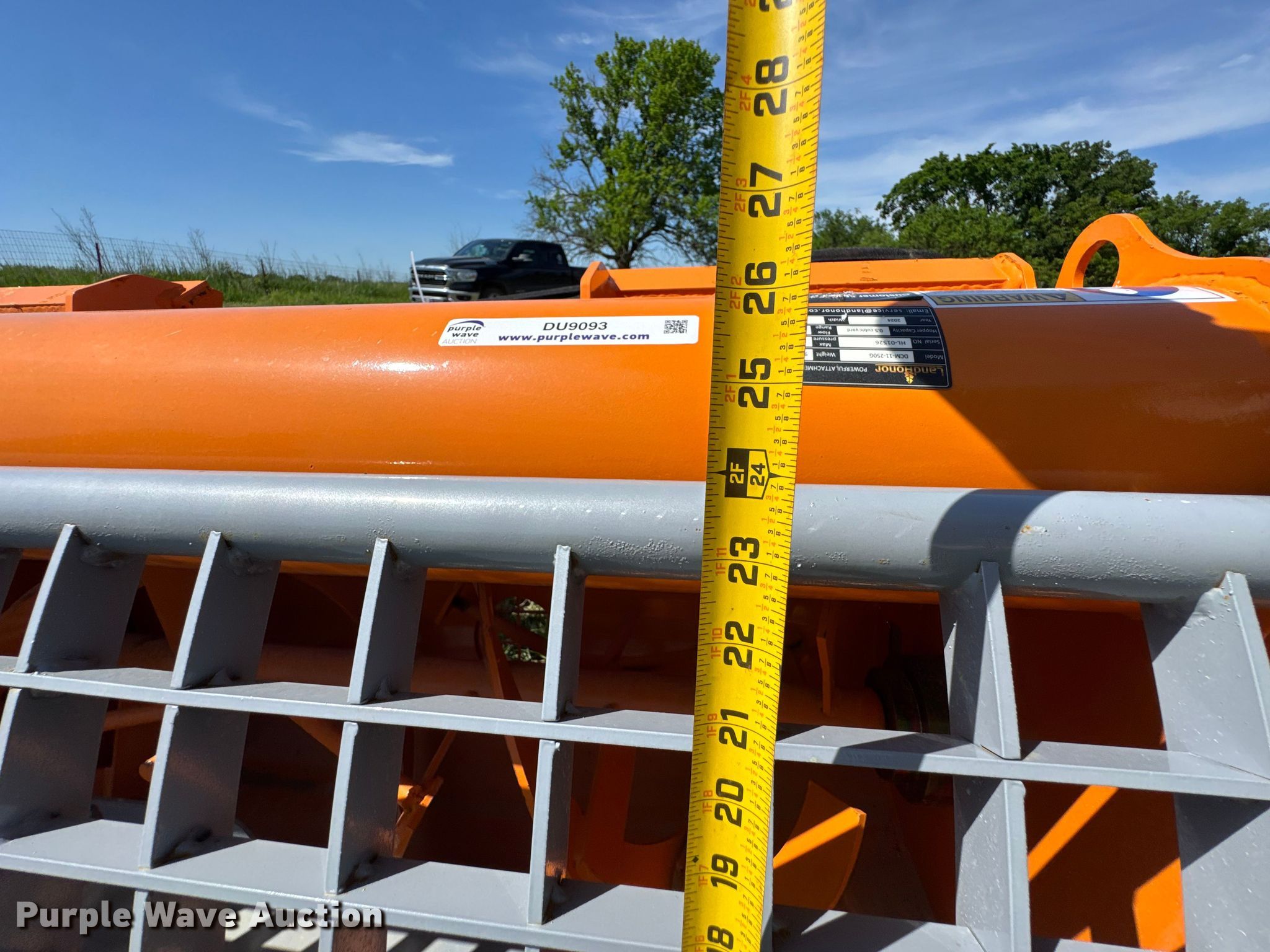 Purple Wave is selling a used Skid Steer Attach. in Kansas. This item is a 2024 LandHonor DCM-11-250G skid steer concrete mixer with the following: Serial: HL-01526, Capacity: 0.5 cu. yd., Length: 24", Width: 48", Hose, Length: 72", Diameter: 6 7/8"