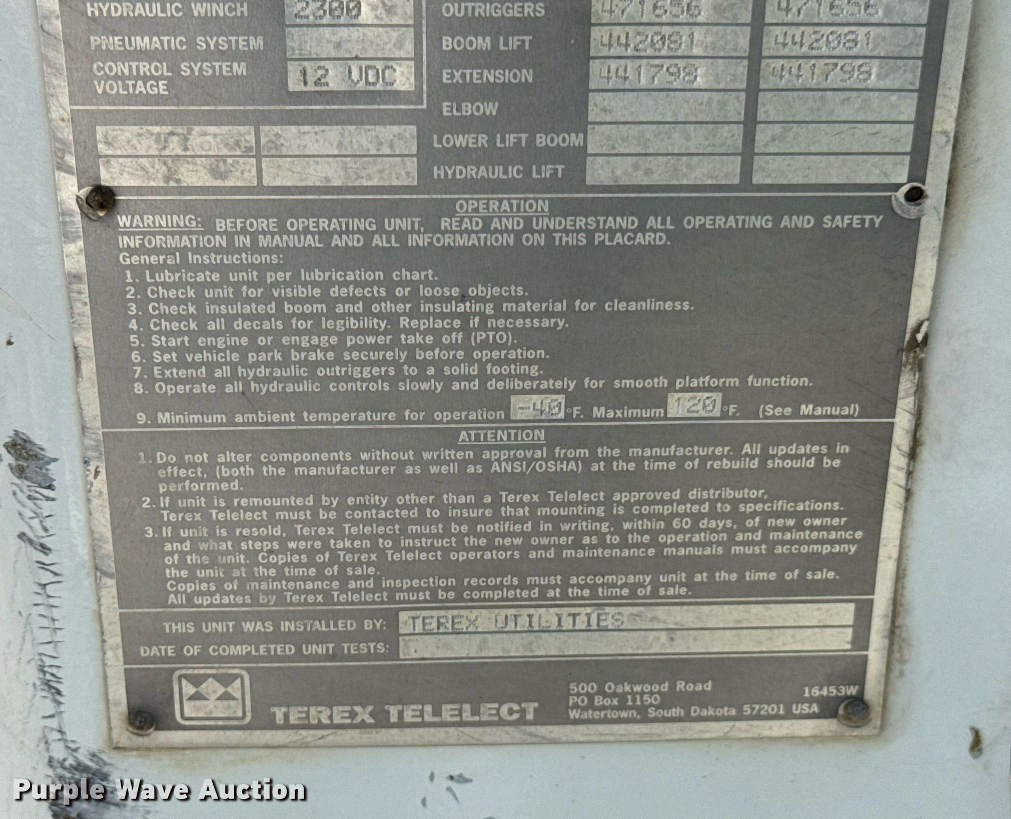 2010 International DuraStar 4400 digger derrick truck. Miles: 168,355 on odometer, VIN: 1HTMKAAN1AH194278. Engine International MaxxForce DT, Displacement: 7.6L, Cylinders: 6, Fuel type: Diesel. Transmission Allison, Automatic. Chassis Axles: Single, Suspension: Spring, Brakes: Air, PTO, GVWR: 33,000 lbs, Wheelbase: 475". Interior AC, Heat, Cruise control, Auxiliary controls. Features Bed Terex, Serial: IN16665, 12' L x 94" W, Boom 2009 Terex Commander JC4047, Serial: 2090539645, Maximum lift capacity: 300 lbs, Maximum lift height: 47', Boom type: Telescopic, Boom controls Ground, Platform/ basket, Material handler, Pole guide. Tires Size: 385/65R22.5. Notes Dead battery, Non-operational engine , Non-operational unit Unit must be towed or hauled. Oklahoma title. Title distribution may be delayed up to 14 days from verification of funds. Northeast Electric Cooperative. Vinita, OK 74301