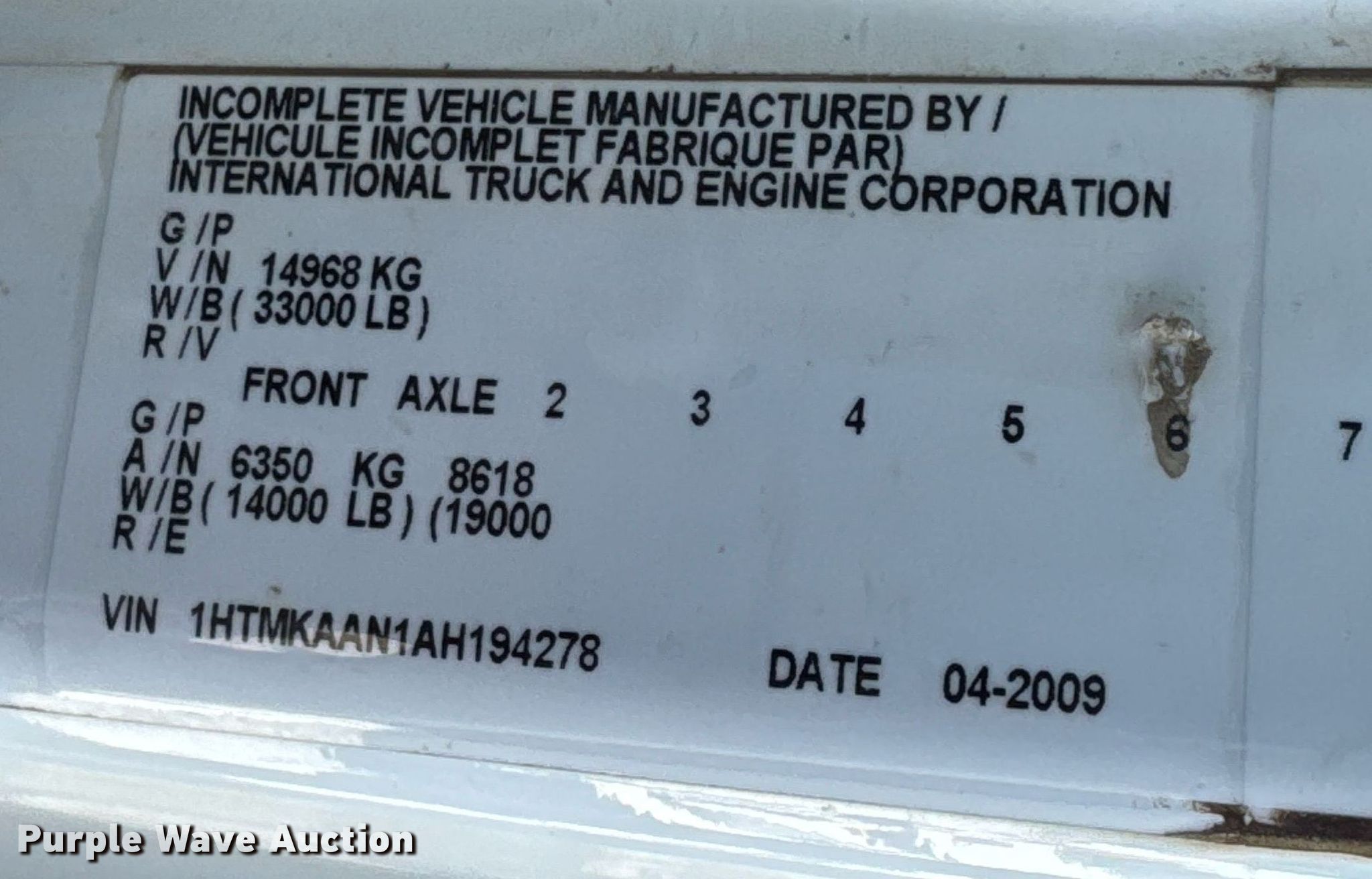 - VIN: 1HTMKAAN1AH194278