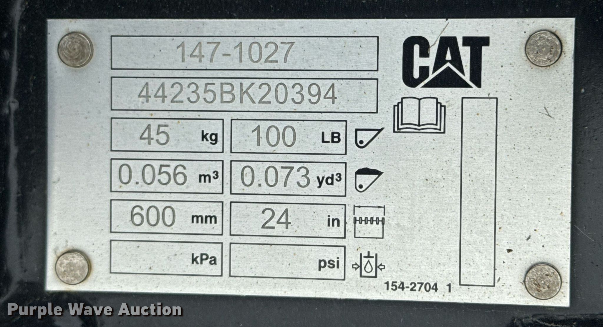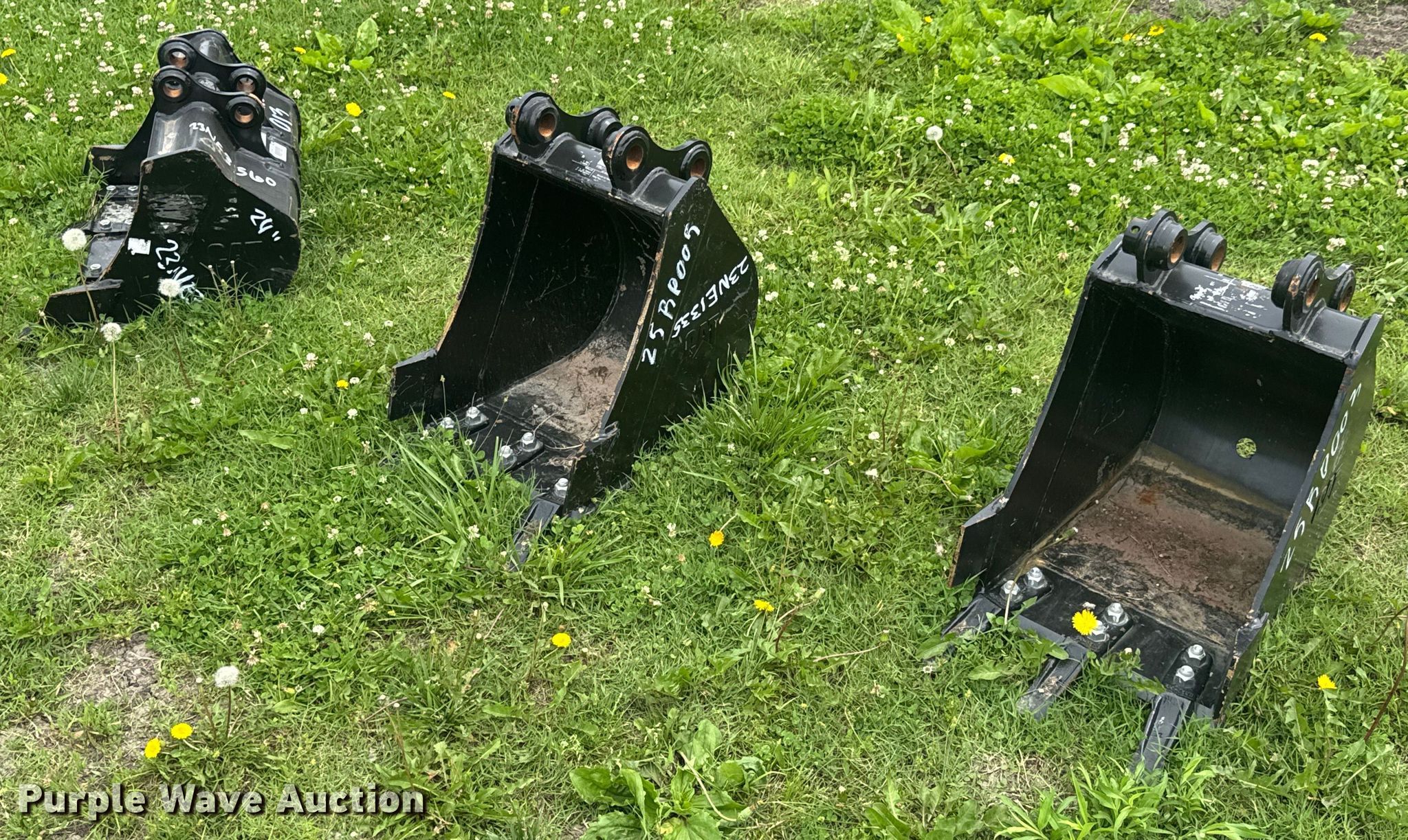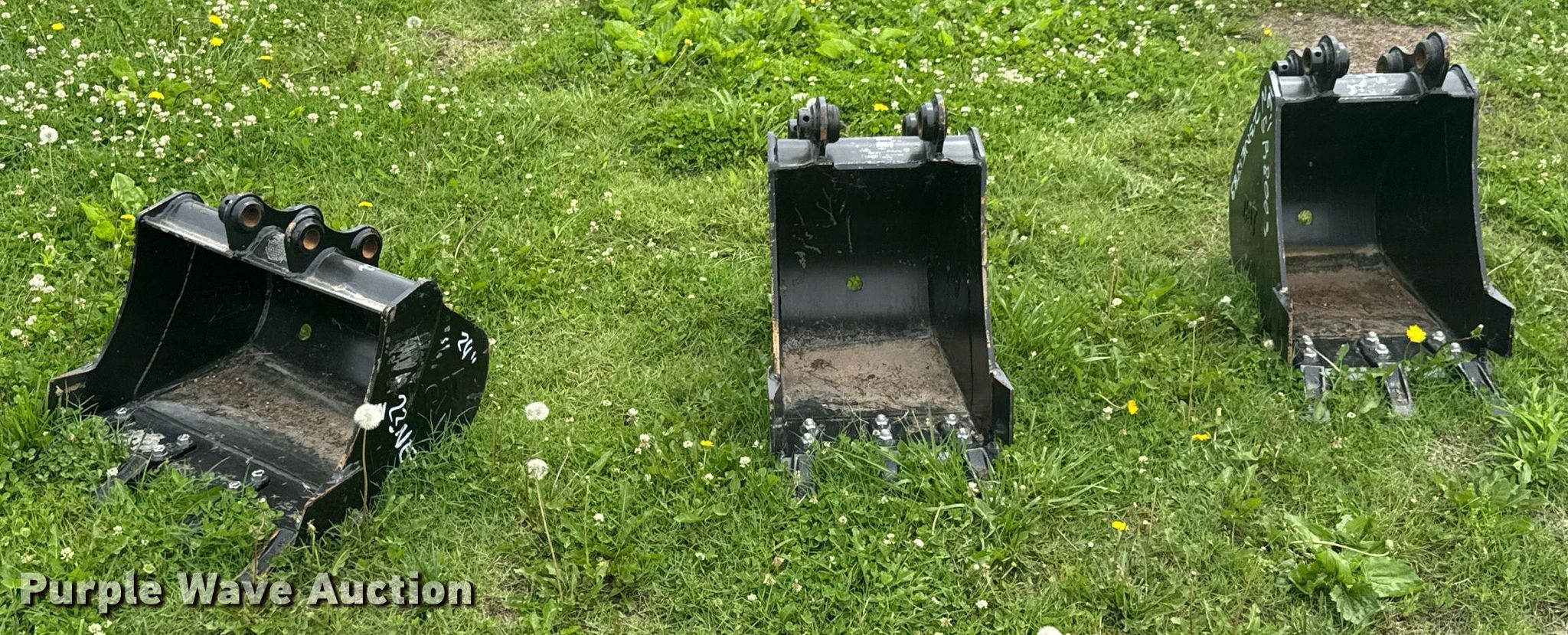 Purple Wave is selling a used Excavator Attach. in Kansas. This item is a (3) Caterpillar mini excavator buckets with the following: (2) Width: 16", Teeth: 3, Capacity: .070 cu. yd., Width: 24", Teeth: 4, Capacity: .073 cu. yd.