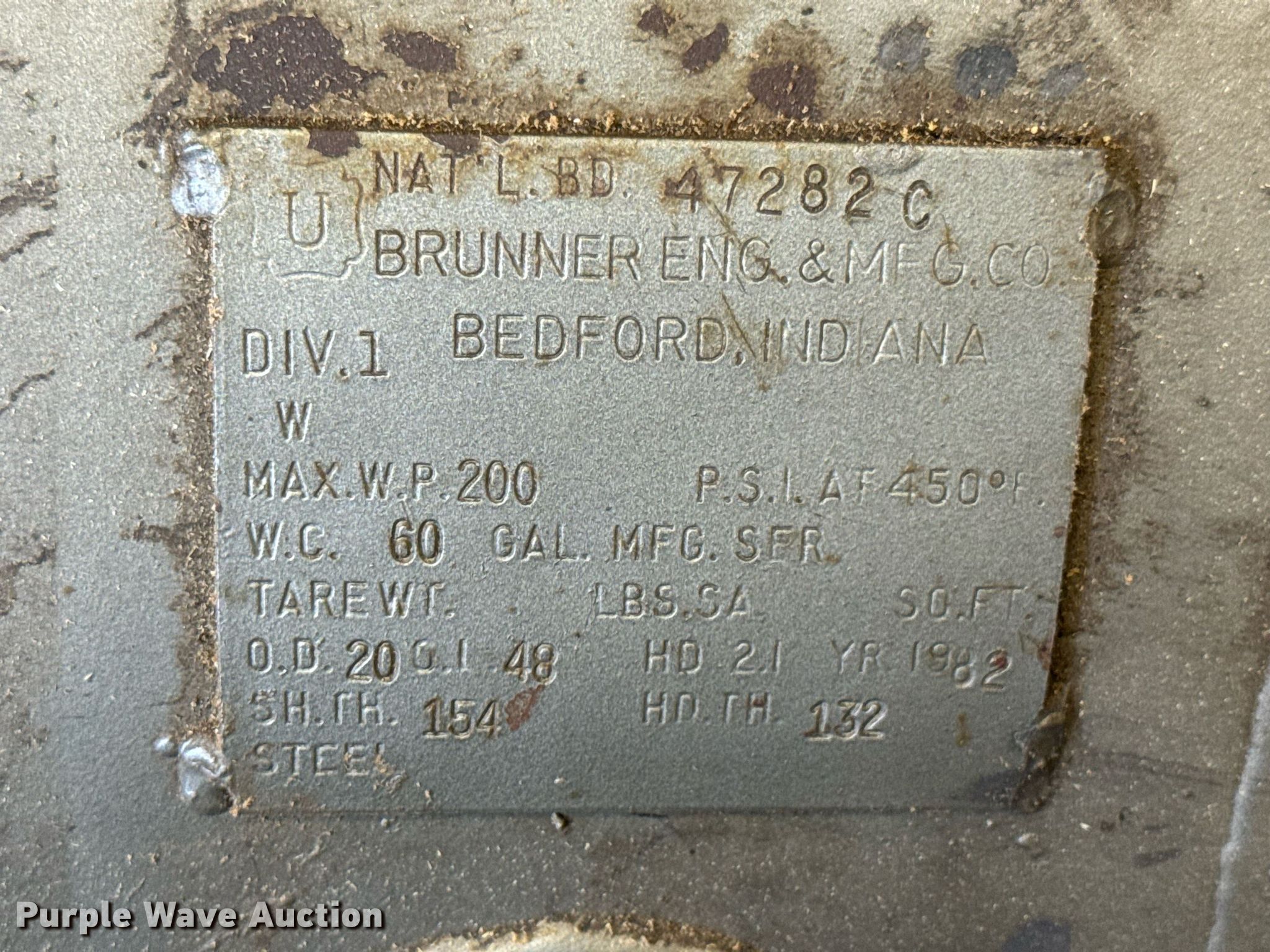 Dayton Speedaire 3Z198A air compressor. Serial: 47282C. Electric Motor HP: 5, Phase: Single. Features Air compressor PSI: 200, Tank capacity: 60 gallons. Outreach For America. Jay, OK 74346