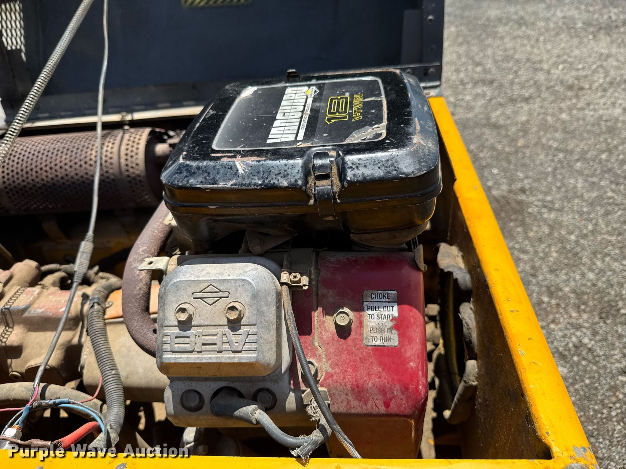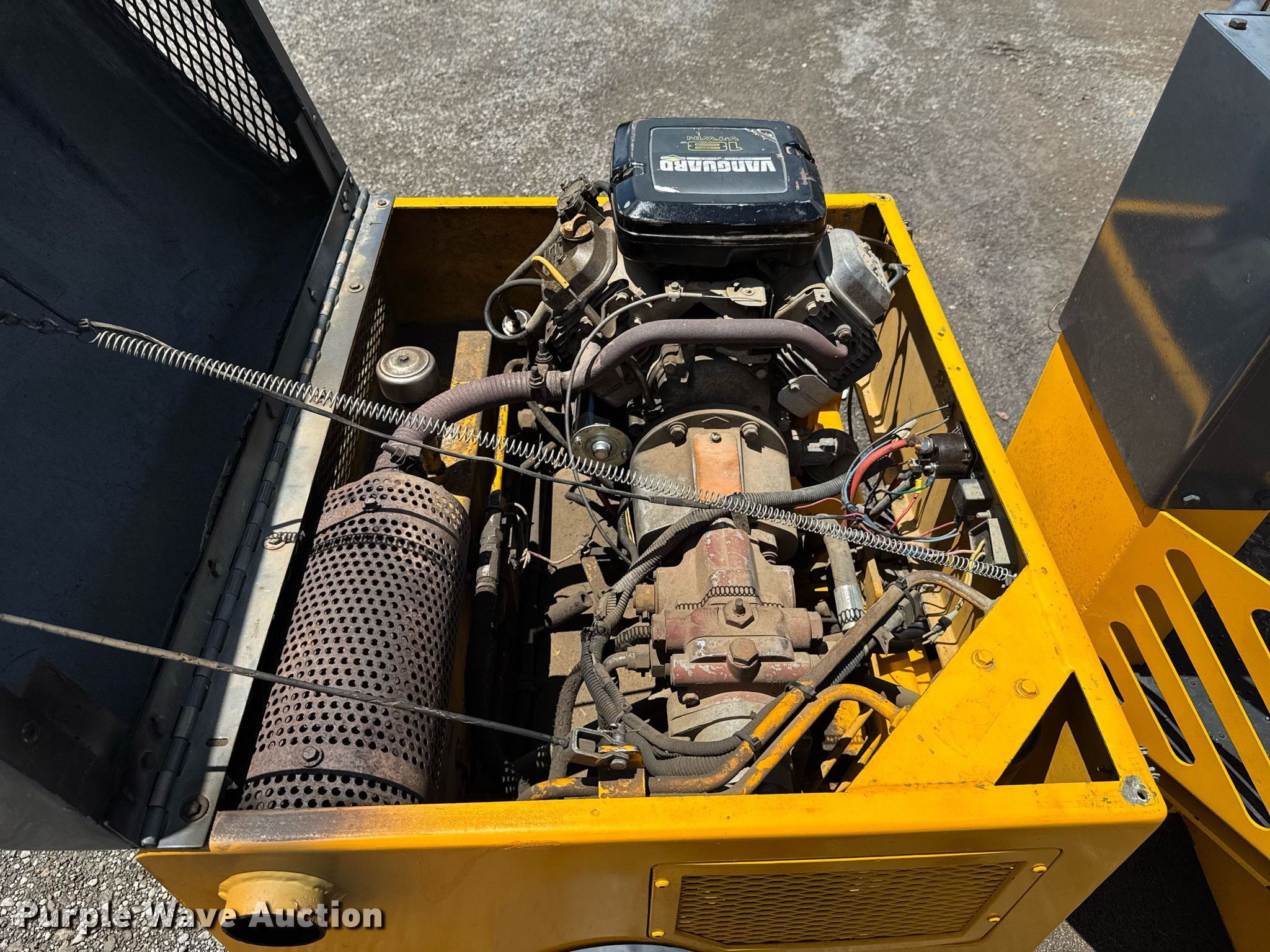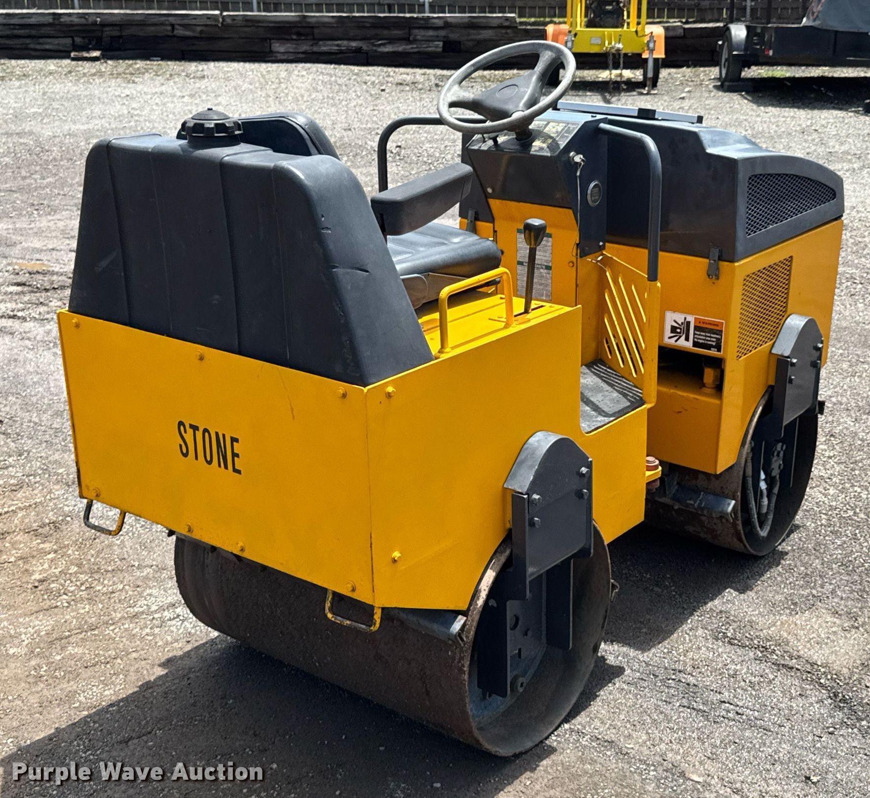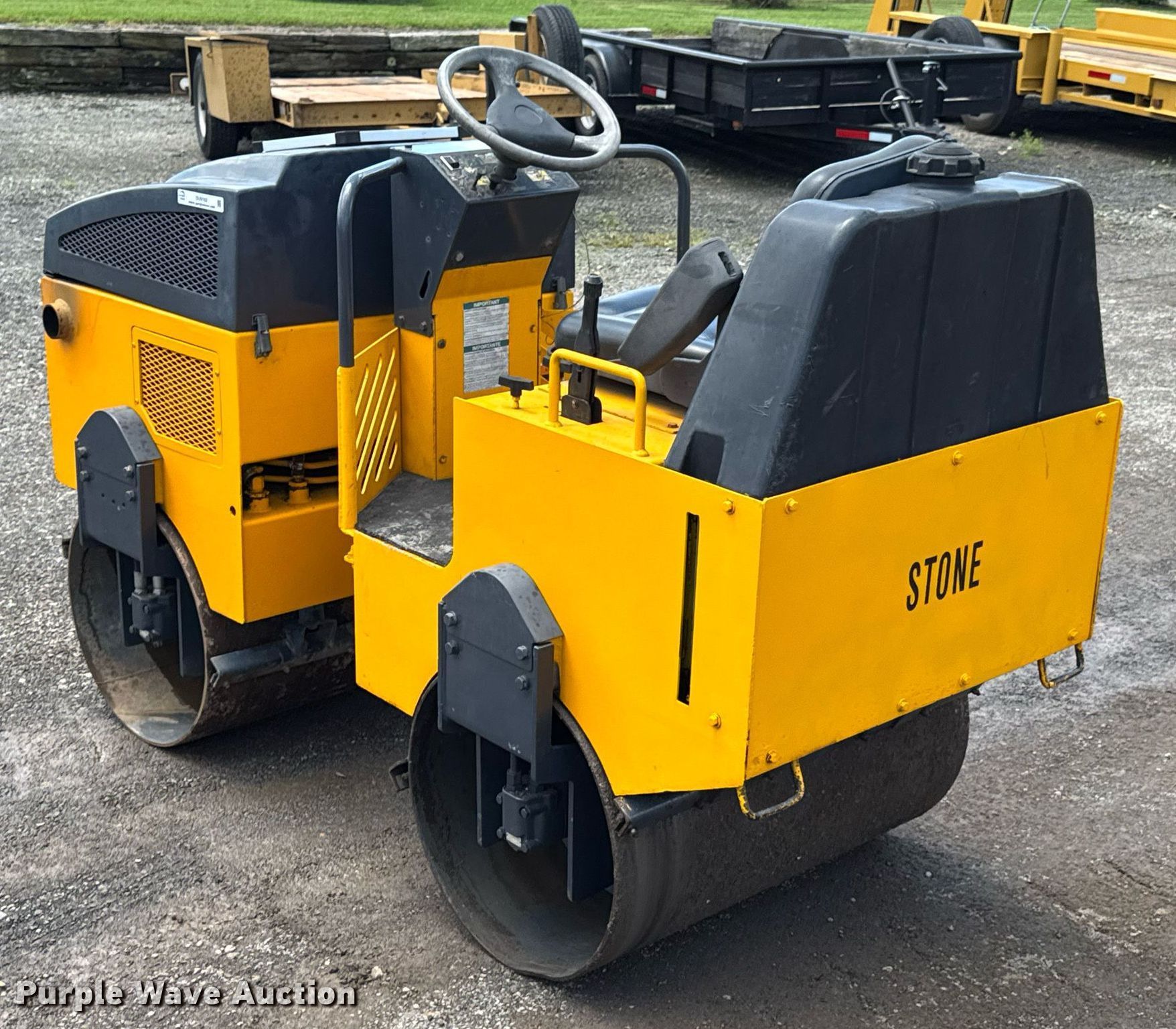 1996 Stone DDR3100 double drum vibratory roller. Hours: 1,967 on meter, Serial: 5096083. Engine Vanguard 350447, Cylinders: 2, Fuel type: Gas, HP: 18. Transmission Hydrostatic. Features Drum: Smooth, Vibratory system: Double, Front drum Width: 36", Diameter: 22", Rear drum Width: 36", Diameter: 22", Drum scrapers: Front, Rear, Water spray applicator: Front, Rear. KPC, LLC. Rudy, AR 72952