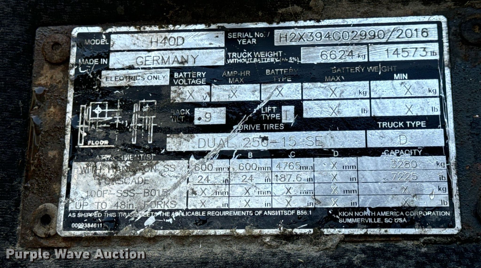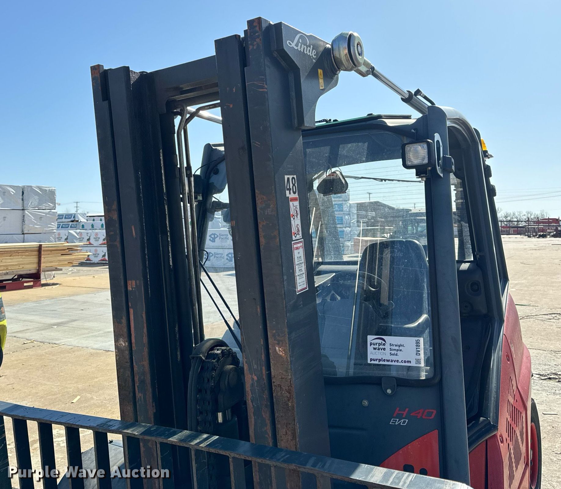 Purple Wave is selling a used Warehouse Forklift in Missouri. This item is a 2016 Linde H40D EVO forklift with the following: Hours: 11,406 on meter, Serial: H2X394G02990