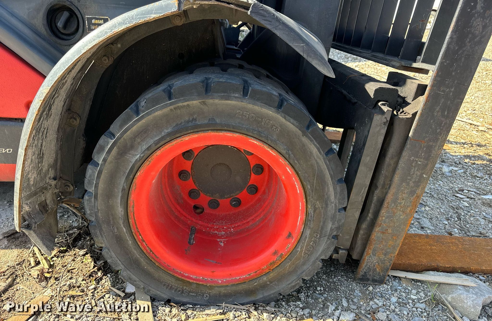 2016 Linde H40D EVO forklift. Hours: 11,406 on meter, Serial: H2X394G02990. Engine Volkswagon, Displacement: 2.0L, Cylinders: 4, Fuel type: Diesel. Transmission Hydrostatic. Operators station OROPS, Canopy, Heat. Features Maximum lift capacity: 7,225 lbs, Maximum lift height: 187", Mast stages: 2, Side shift, Mast tilt, Fork length: 45". Tires Size: 250-15, Solid. Notes Dead battery, Fuel system issues , Non-operational unit. Mid-City Lumber Co.. Columbia, MO 65202