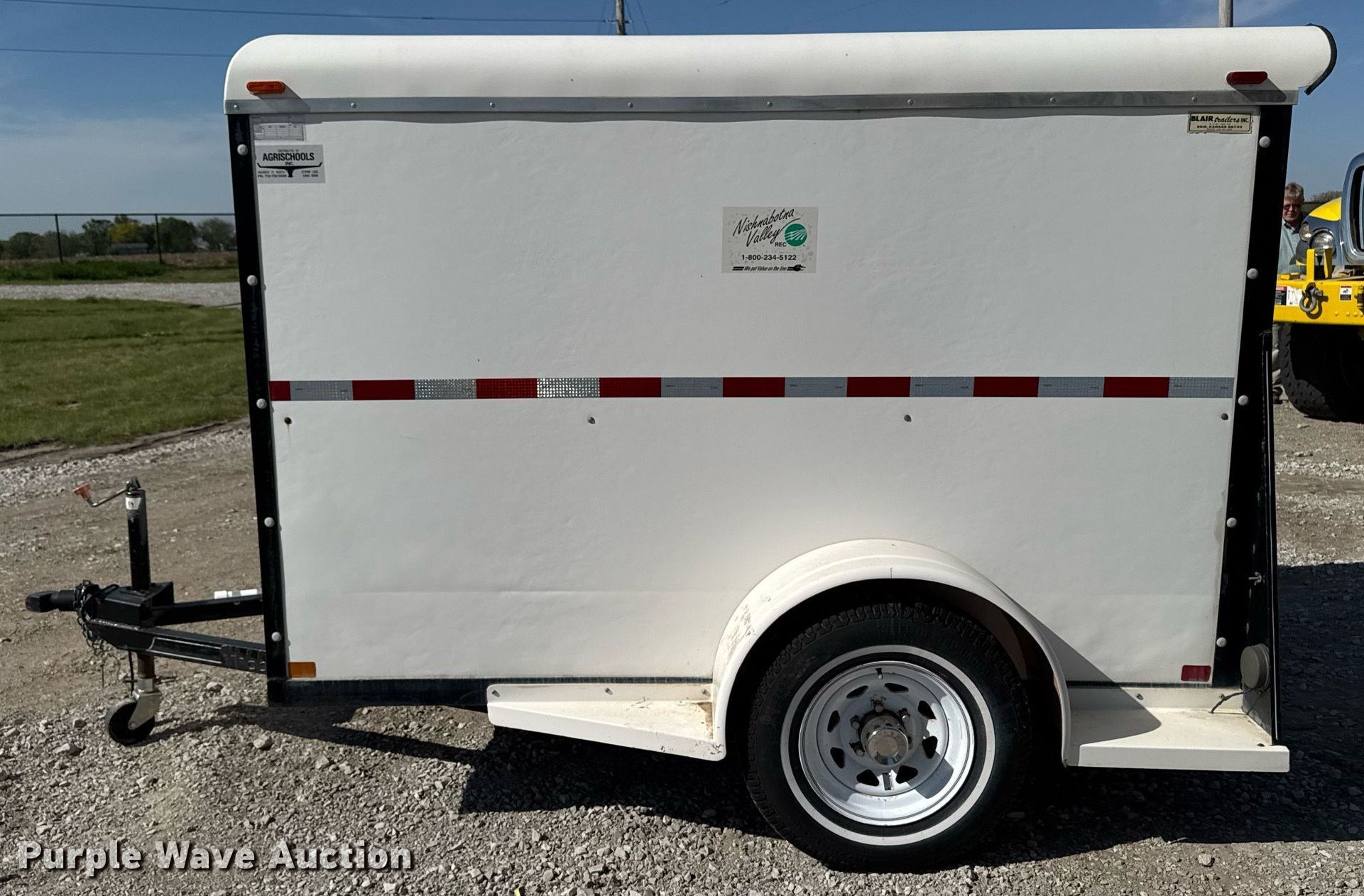 1994 Blair enclosed cargo trailer. VIN: 1B9BCBB19R1072662. Dimensions Overall: 11' 6" L x 81" W, Body: 8' 3" L x 60" W. Features Deck type: Wood. Chassis Ball hitch: 2 5/16", Landing gear: Single, Suspension: Torsion, GVWR: 3,240 lbs. Tires Steel wheels, Size: 215/75R15. Transfer of ownership documentation will be a bill of sale. Midland Power Cooperative. Boone, IA 50036
