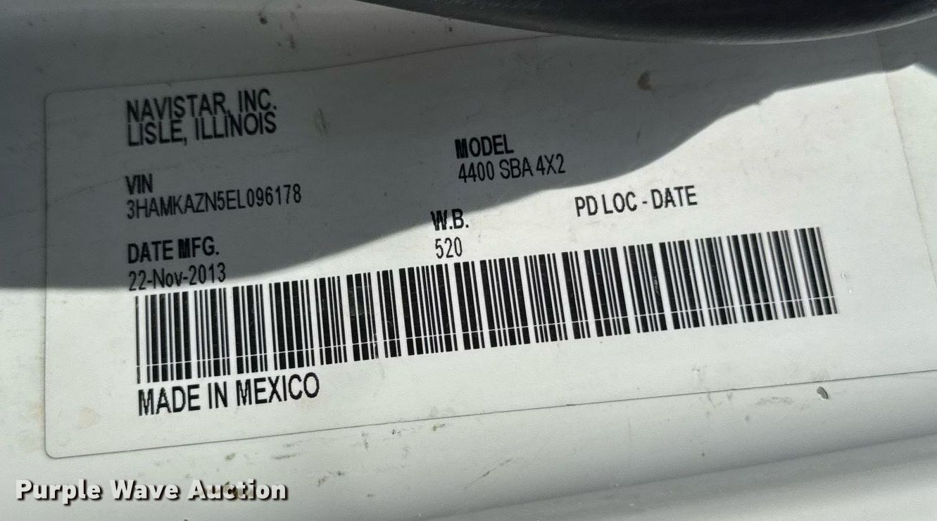 Purple Wave is selling a used Bucket Truck in Iowa. This item is a 2014 International 4400 bucket truck with the following: Miles: 178,341 on odometer, Hours: 9,863 on meter, VIN: 3HAMKAZN5EL096178