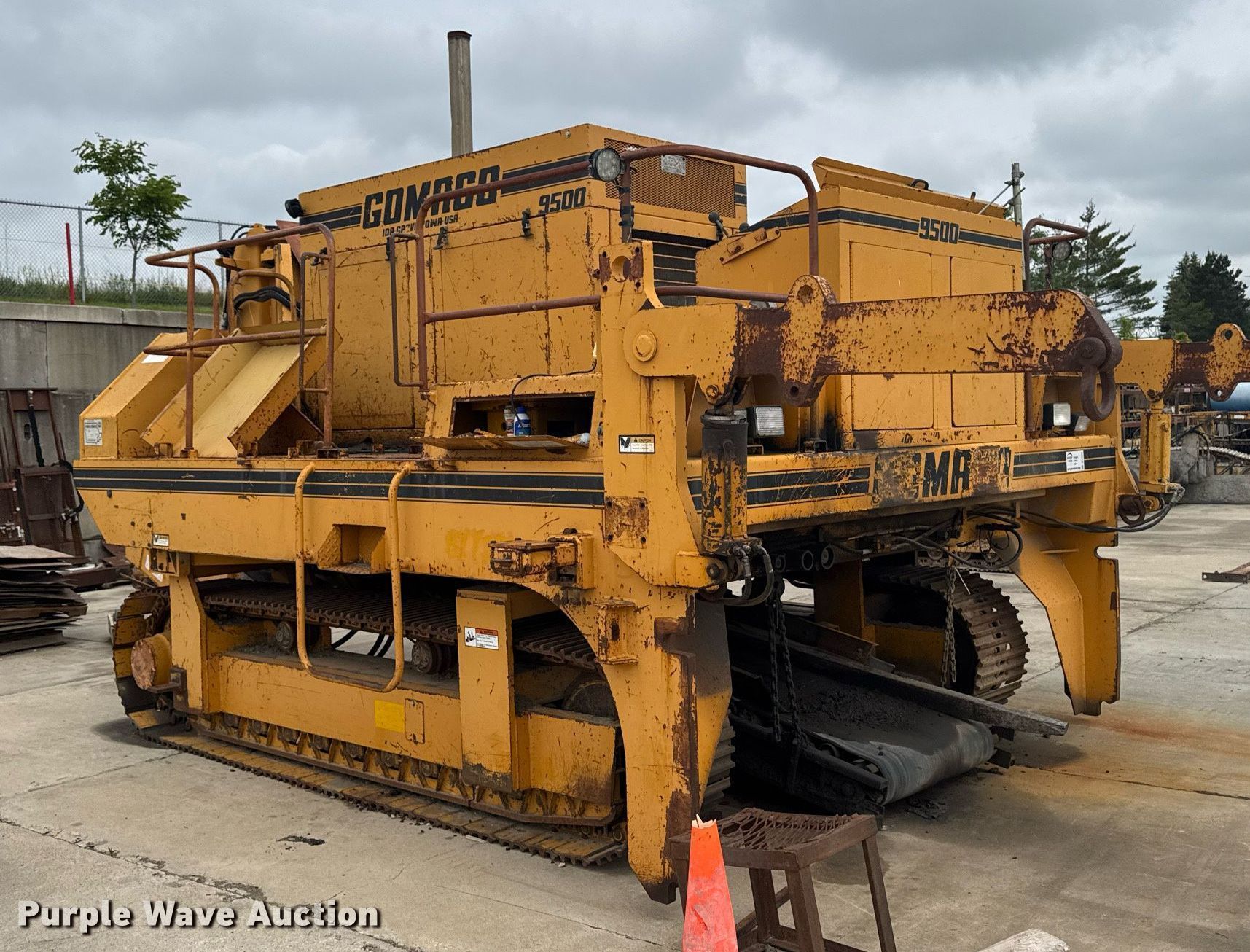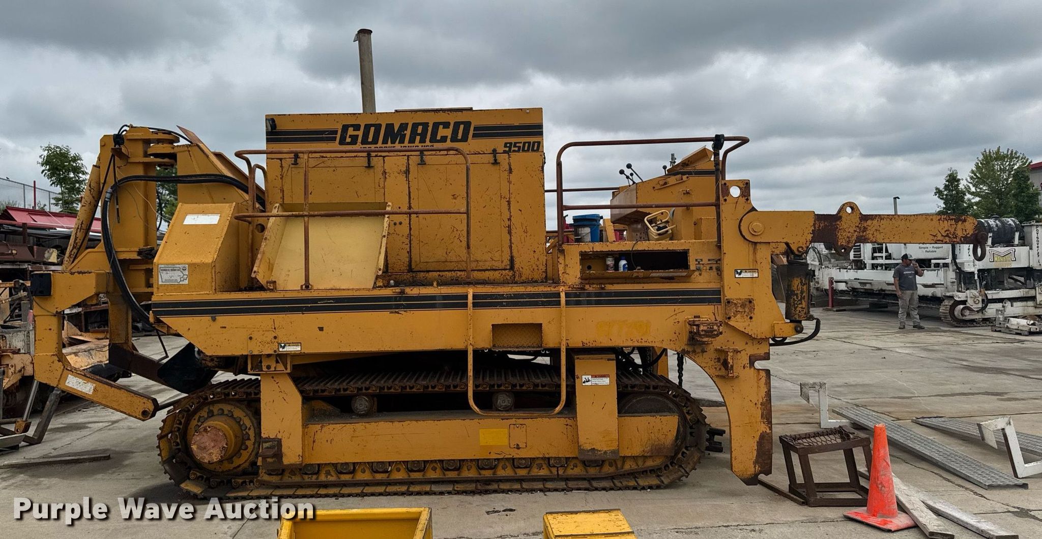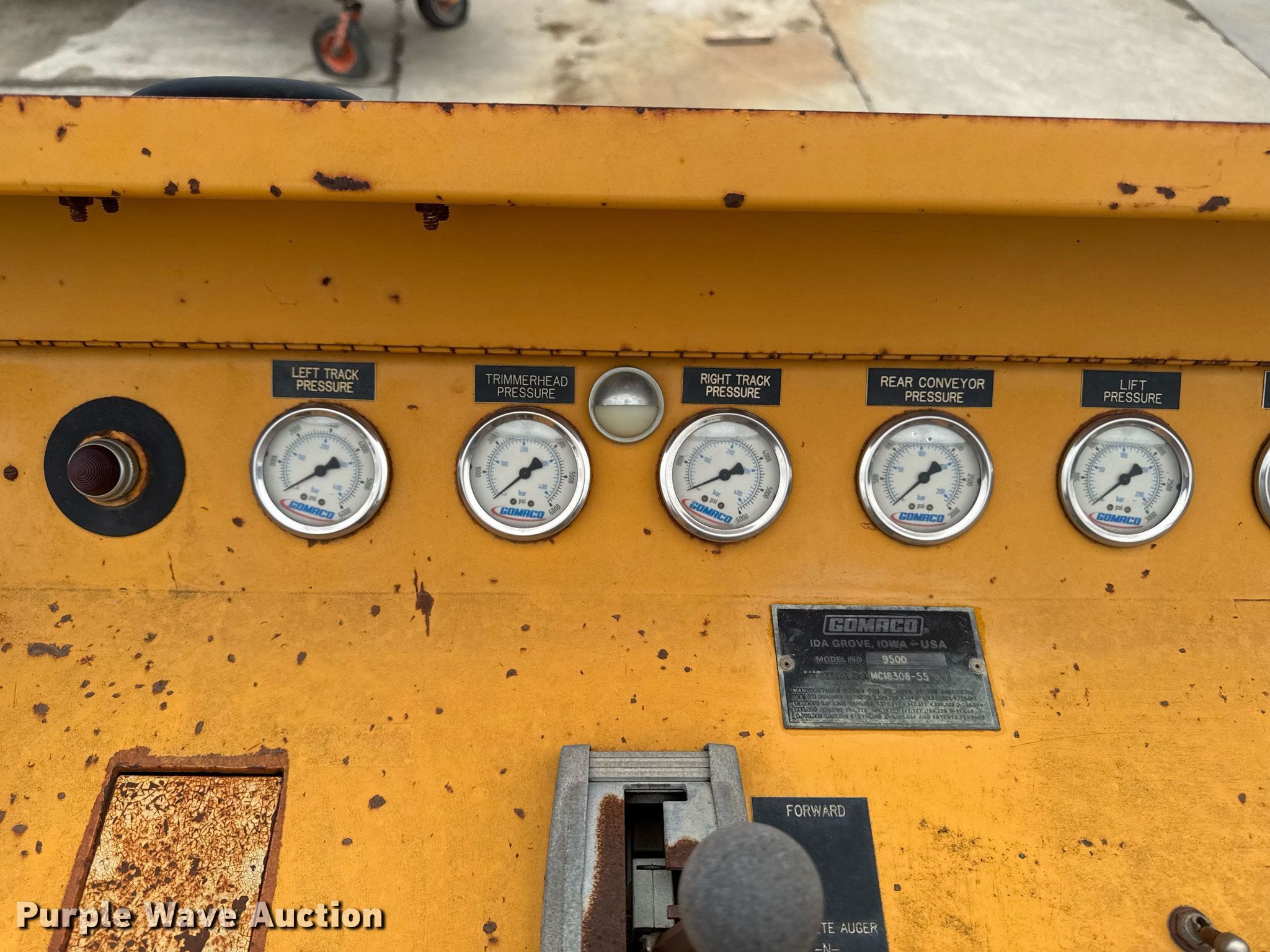 Gomaco 9500 trimmer. Hours: Unknown, Serial: MC1838-55. Engine Detroit Diesel, Cylinders: 6, Fuel type: Diesel. Transmission Hydrostatic. Tracks Width: 20", Steel. Notes Possible missing parts, Rear conveyor missing, Trimmer head missing, Hour meter is illegible, Non-operational unit. Manatt's, Inc.. Ankeny, IA 50021