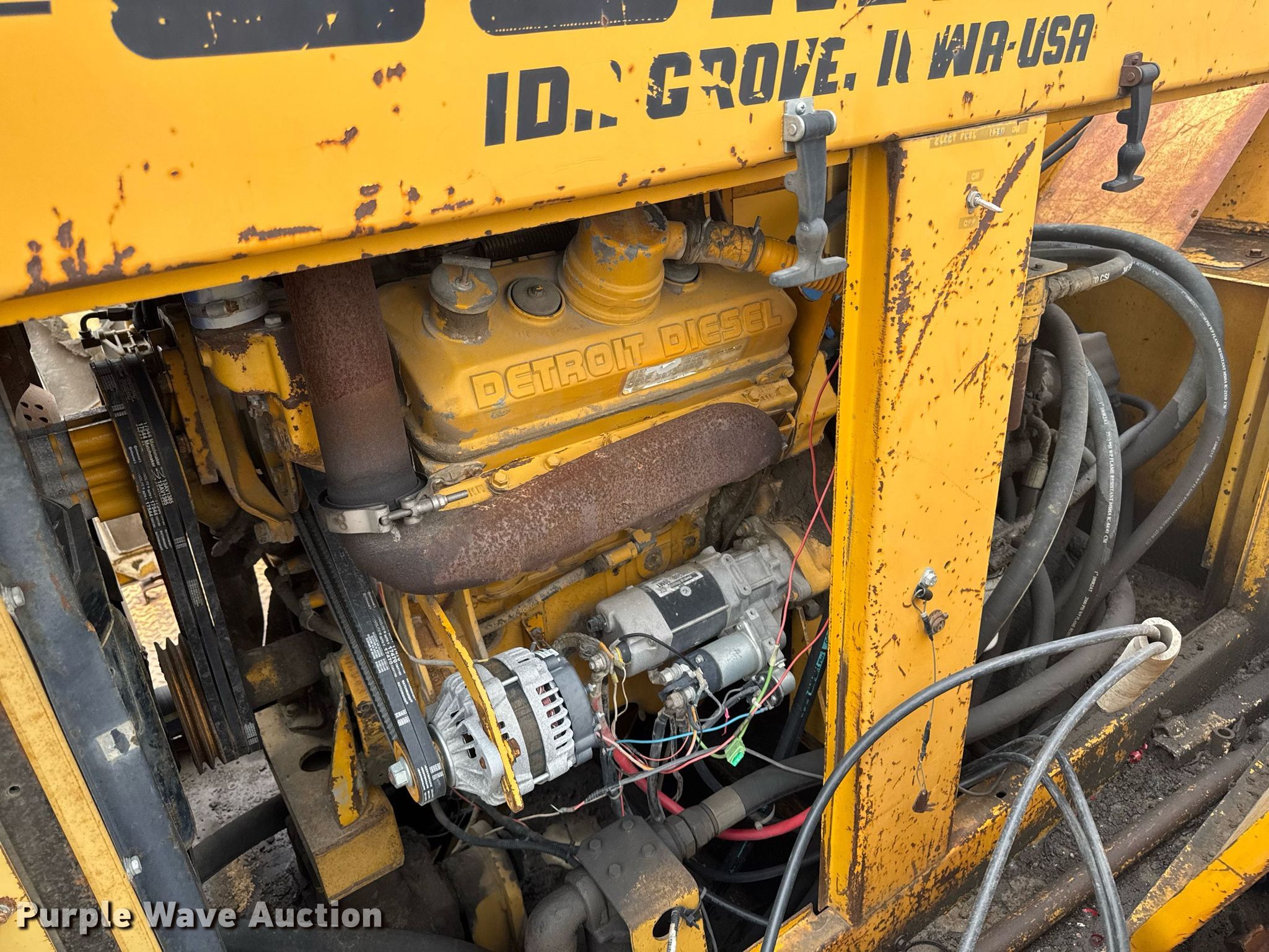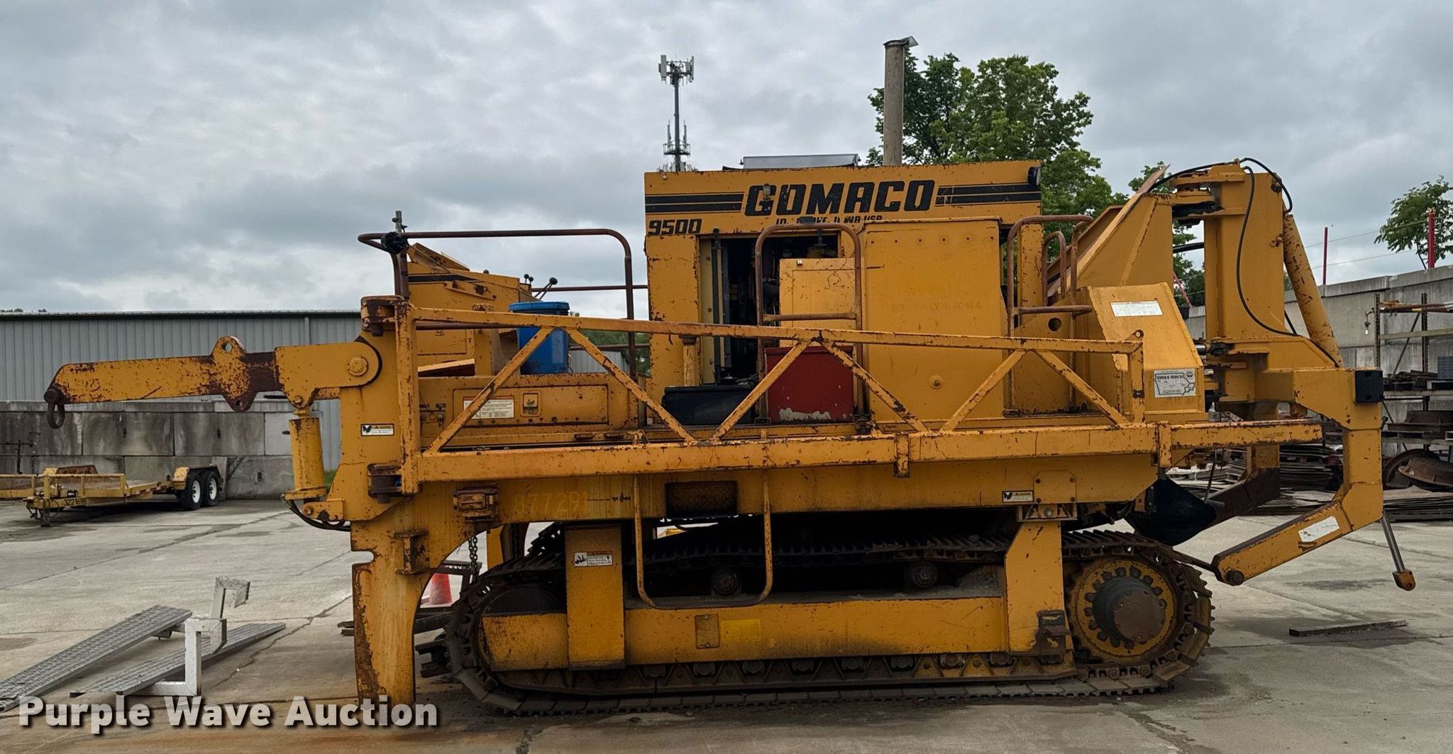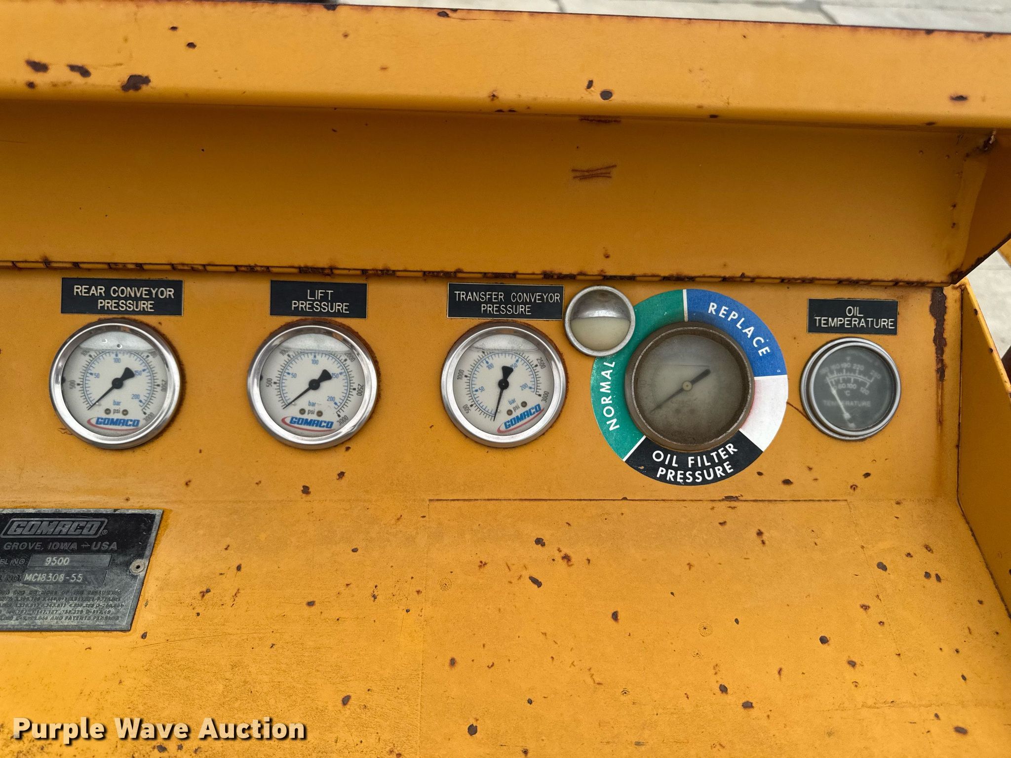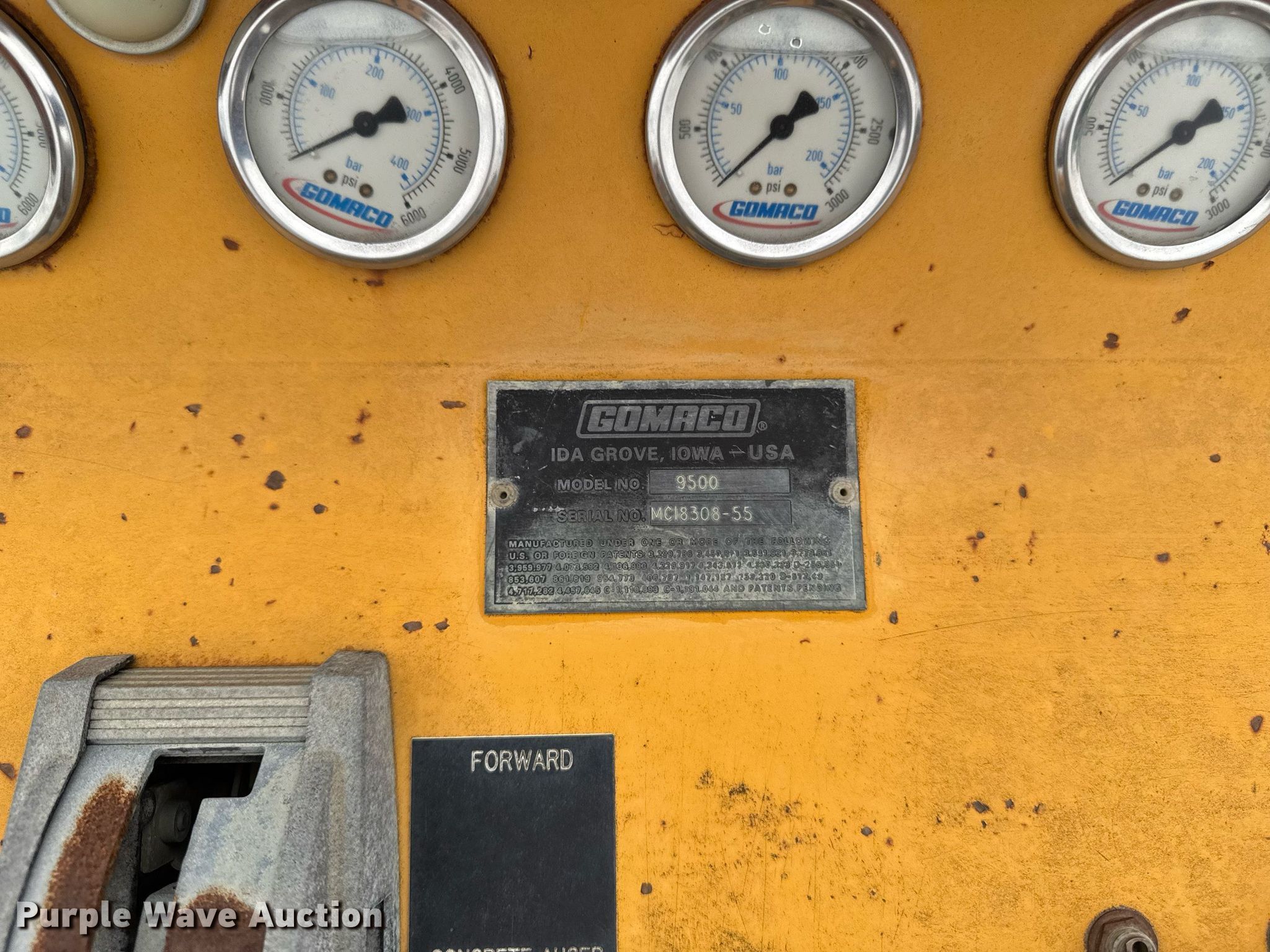 Gomaco 9500 trimmer. Hours: Unknown, Serial: MC1838-55. Engine Detroit Diesel, Cylinders: 6, Fuel type: Diesel. Transmission Hydrostatic. Tracks Width: 20", Steel. Notes Possible missing parts, Rear conveyor missing, Trimmer head missing, Hour meter is illegible, Non-operational unit. Manatt's, Inc.. Ankeny, IA 50021