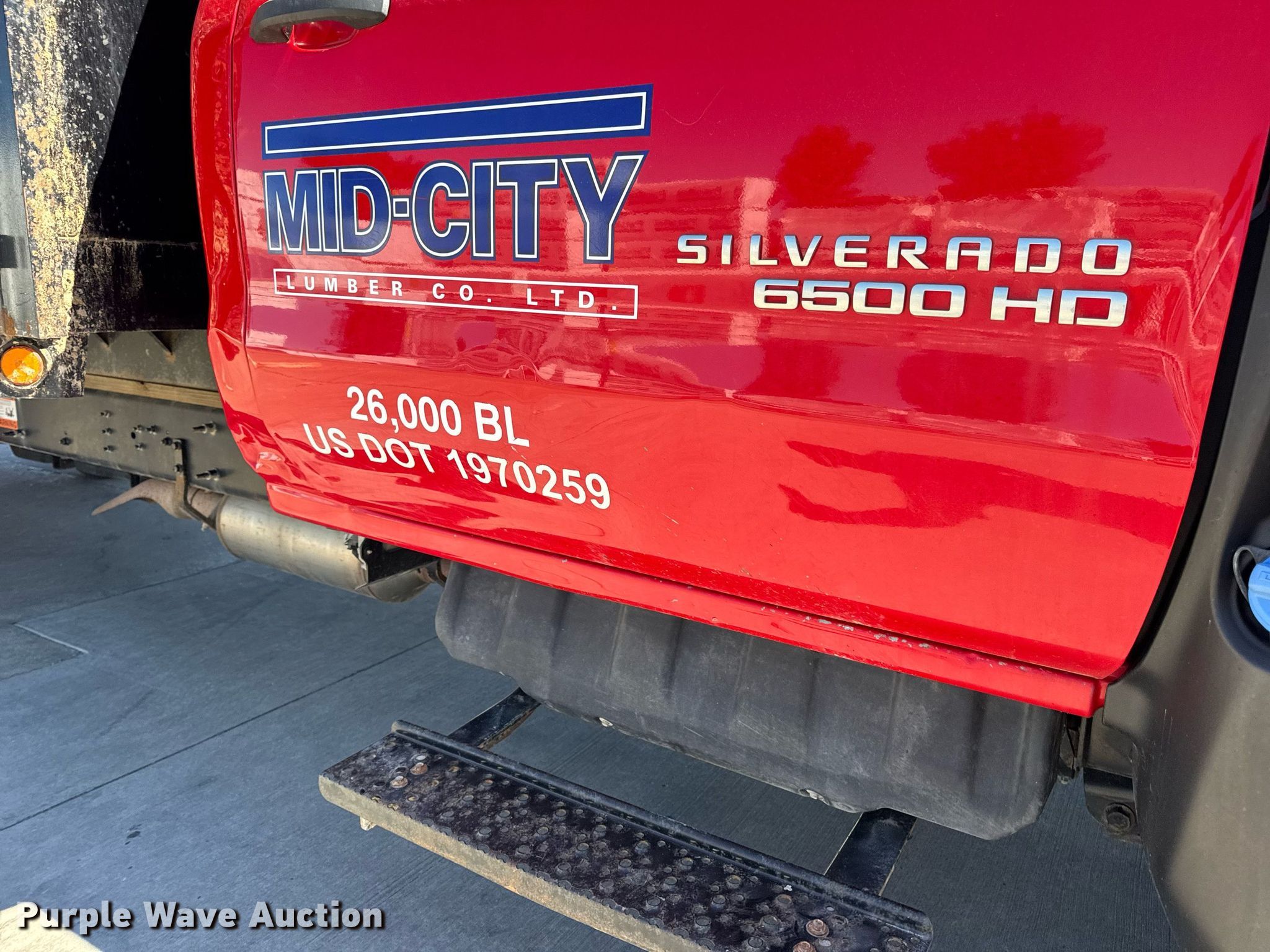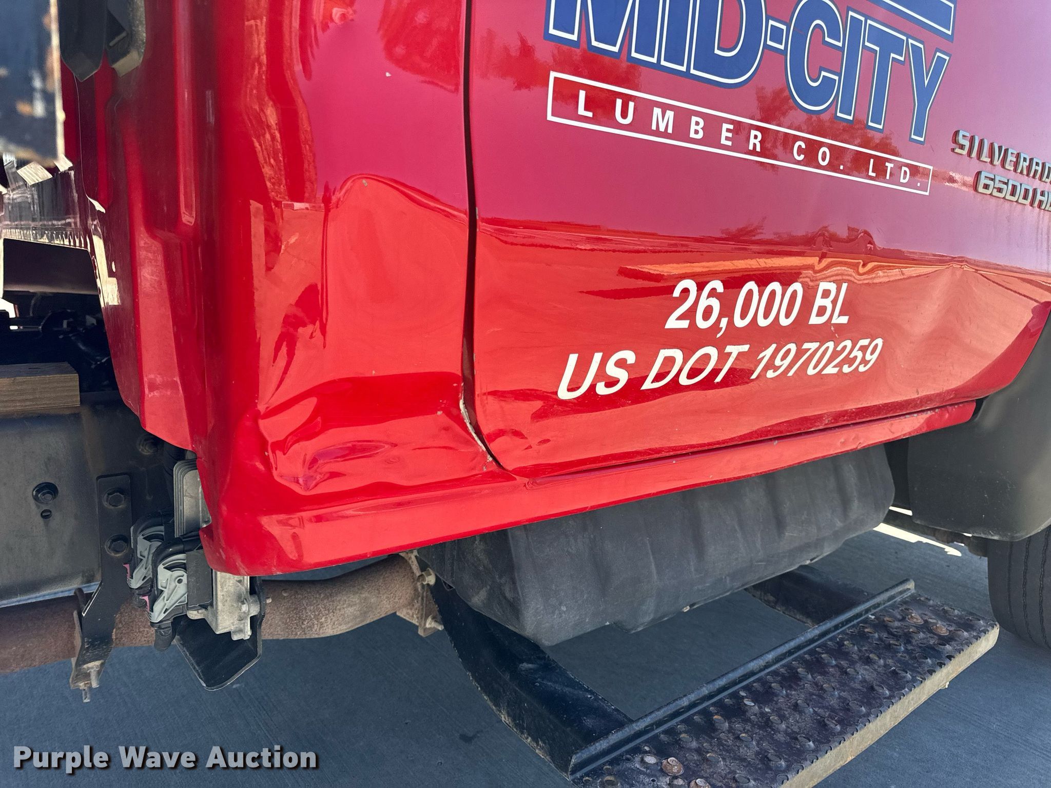 2020 Chevrolet Silverado 6500HD flatbed truck. Miles: 96,878 on odometer, Hours: 4,016 on meter, VIN: 1HTKHPVM6LH691100, Unit #: 219. Engine Displacement: 6.6L, Cylinders: 8, Fuel type: Diesel. Transmission Automatic. Chassis Axles: Single, Suspension: Spring, Brakes: Hydraulic, PTO, GVWR: 23,500 lbs. Interior AC, Heat, Power windows, Power locks, Cruise control, Auxiliary controls. Features Dump flatbed Parkhurst, 17' 10" L x 96" W, Ram: Single. Tires Size: 225/70R19.5. Missouri title. Title distribution may be delayed up to 14 days from verification of funds. Mid-City Lumber Co.. Columbia, MO 65202