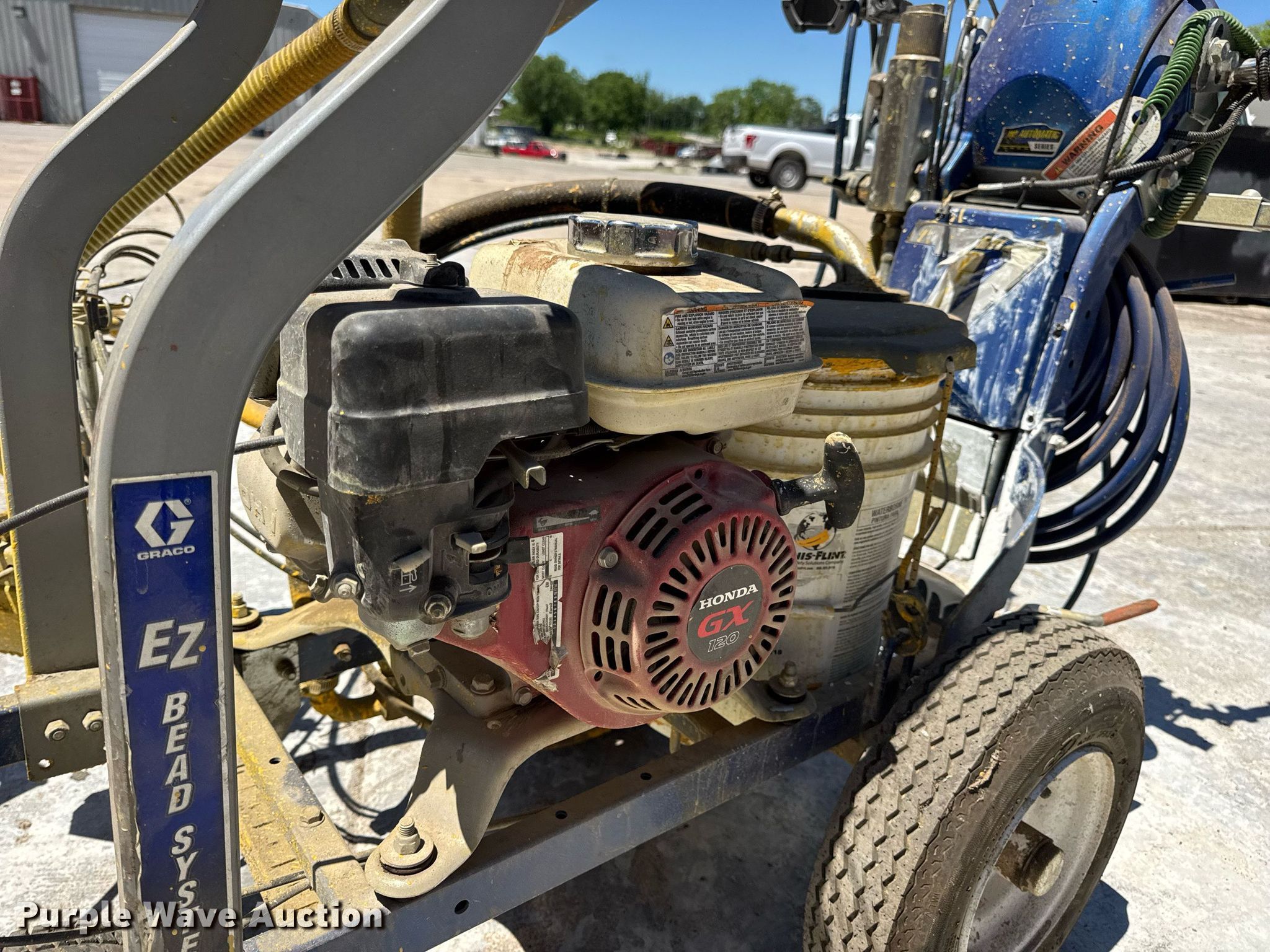 Graco Line Lazer 3900 paint striper. Engine. Honda GX120, Cylinders: 1, Fuel type: Gas. Features (2) spray guns, Glass bead hopper. Tires Front: 9X3.50-4, Rear: 4.80-8. Notes Dead battery, Engine issues, will not stay running , Unknown operating condition. Capital Equipment. Columbia, MO 65202