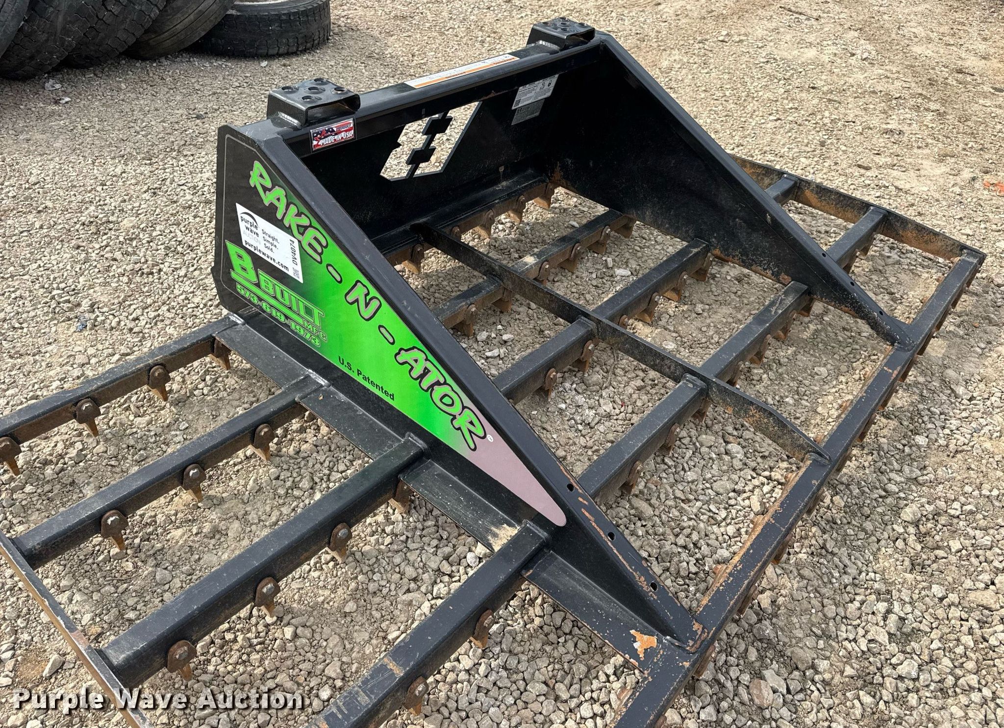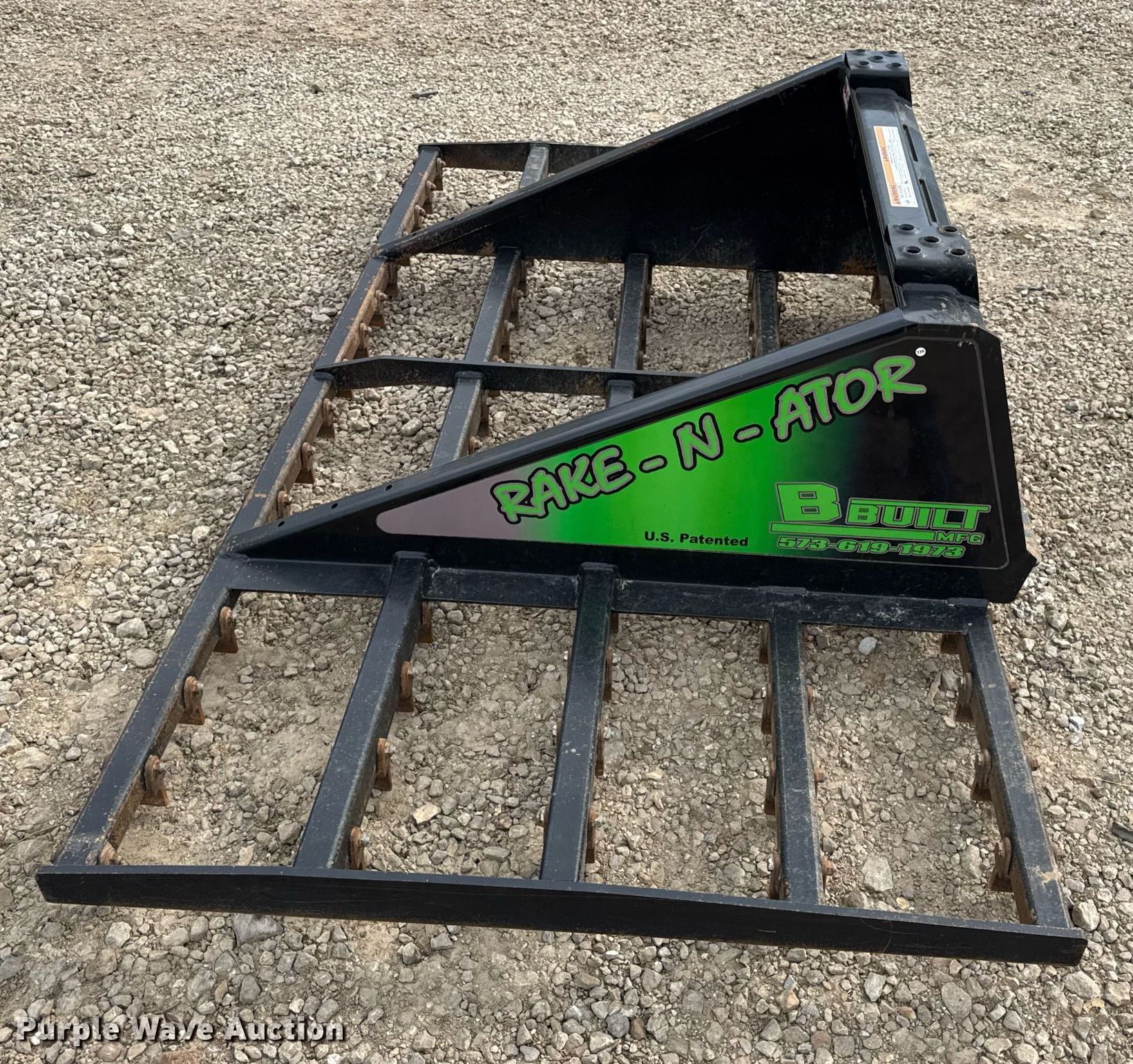 Purple Wave is selling a used Skid Steer Attach. in Missouri. This item is a 2024 BBuilt Rake-N-Ator skid steer landscape rake with the following: Serial: LSR061612402, Width: 94"