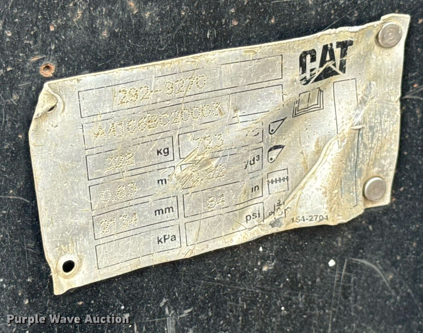 2014 Caterpillar 262D skid steer loader. Hours: 5,845 on meter, Serial: CAT0262DHDTB01861. Engine Caterpillar C3.3B, Serial: 8EJ0126, Displacement: 3.3L, Cylinders: 4, Fuel type: Diesel. Transmission Hydrostatic. Operators station Bucket control: Hand. Features Auxiliary hydraulics, Quick coupler: Manual, Bucket Caterpillar, Width: 86", Cutting edge: Bolt-on, Forks Length: 48". Tires Size: 12X16.5. Notes Warning indicator: Fault code. View repairs. Hardy Holding Group. Boonville, MO 65233