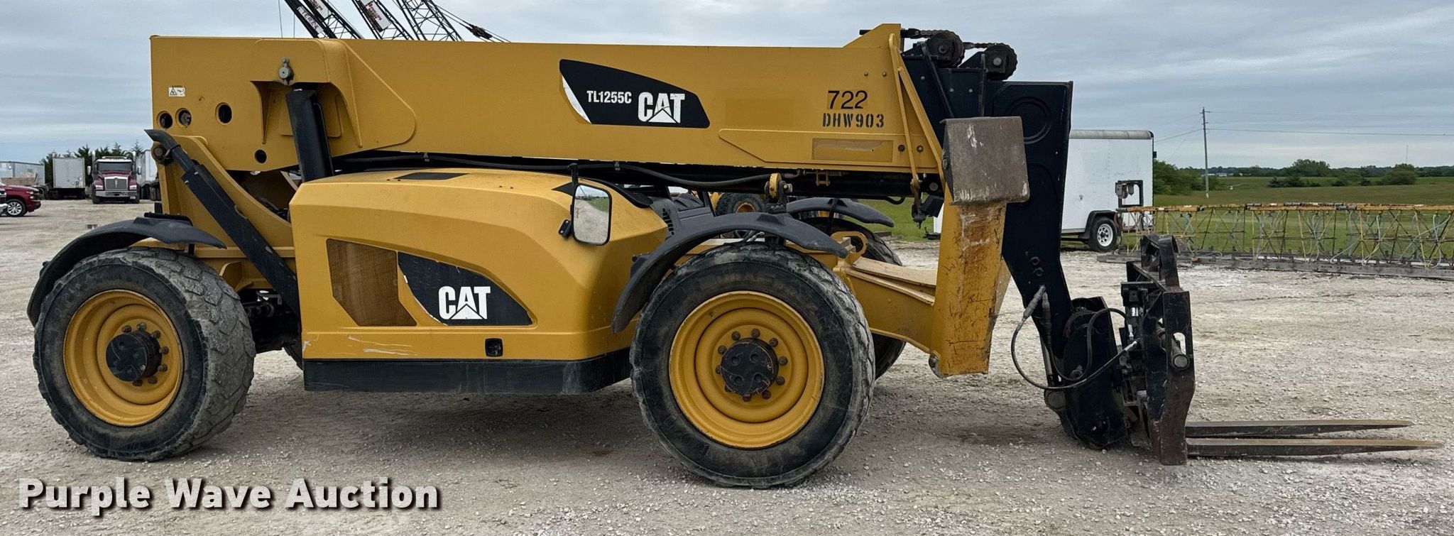 Purple Wave is selling a used Telehandler in Missouri. This item is a 2014 Caterpillar TL1255C telehandler with the following: Hours: 4,550 on meter, Serial: DHW00903