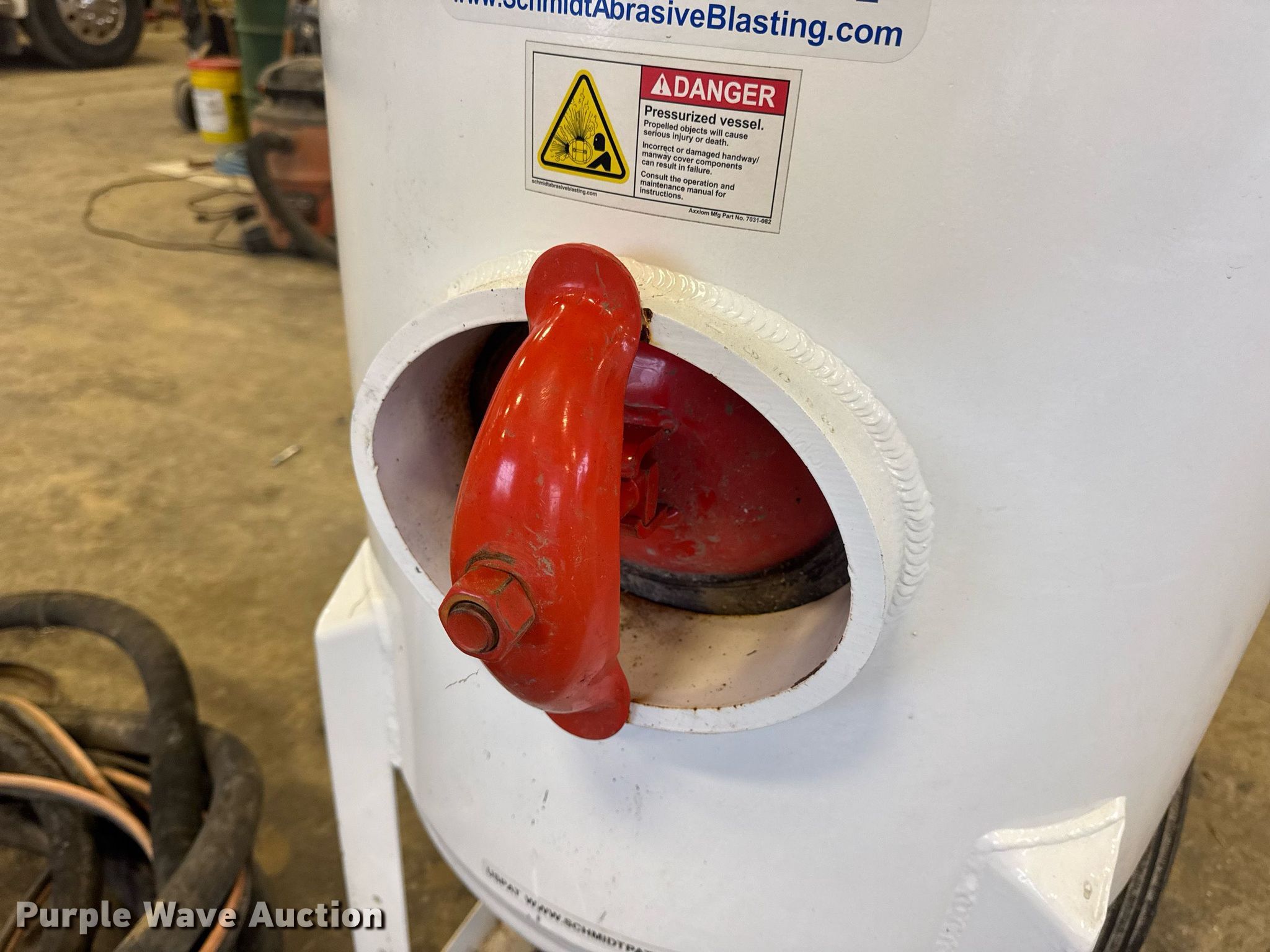 2021 Axxiom Manufacturing Schmidt 6.5 C.F sand blaster. Serial: 24L-19593. Features Maximum PSI: 150, Hose, Nozzle. Hardy Holding Group. Boonville, MO 65233