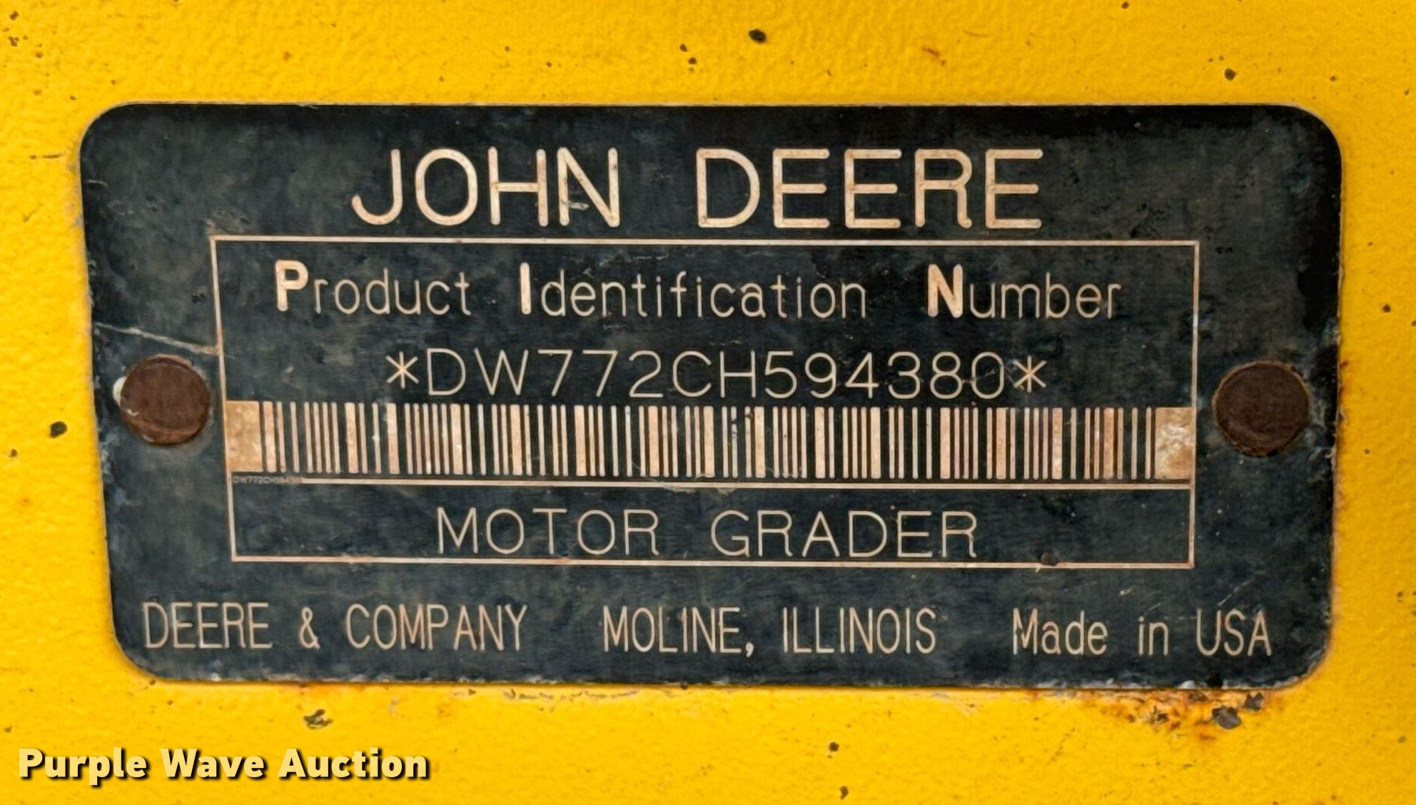 Purple Wave is selling a used Motor Grader in Kansas. This item is a 2004 John Deere 772CH Series II motor grader with the following: Hours: 2,017 on meter, Actual hours unknown, Serial: DW772CH594380