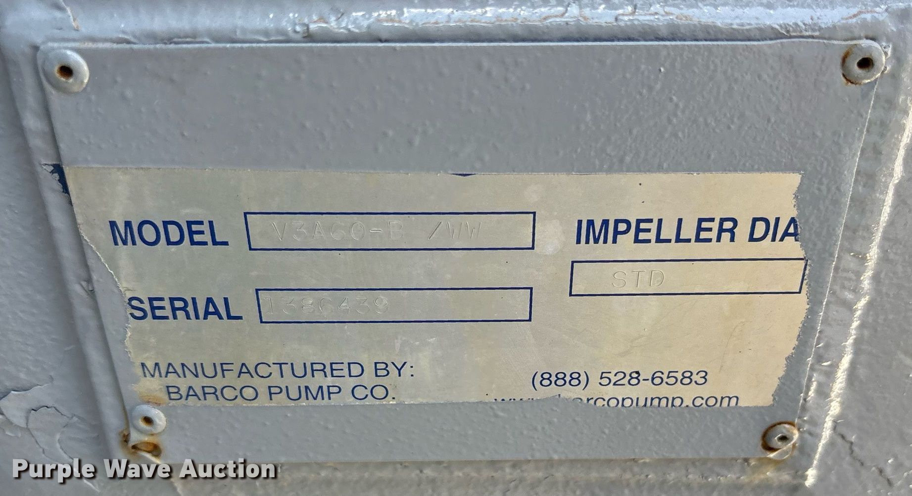 Barco V3A60-BZWw pump has sold in Pelican, Louisiana for $2255. Item DY0474 sold on June 19th, 2025.
