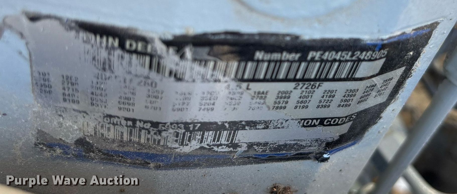 Gorman-Rupp pump. Hours: 1,216 on meter. Engine John Deere 4045T, Displacement: 4.5L, Cylinders: 4, Fuel type: Diesel. Features Inlet: 6", Skid mounted. Notes Battery missing. Apex Energy Service. Pelican, LA 71063
