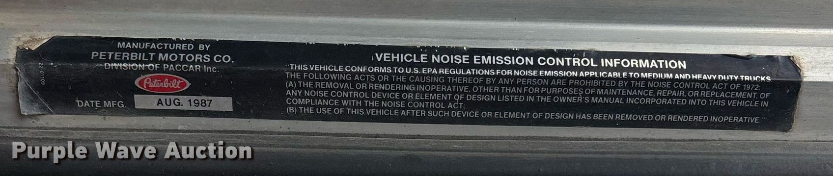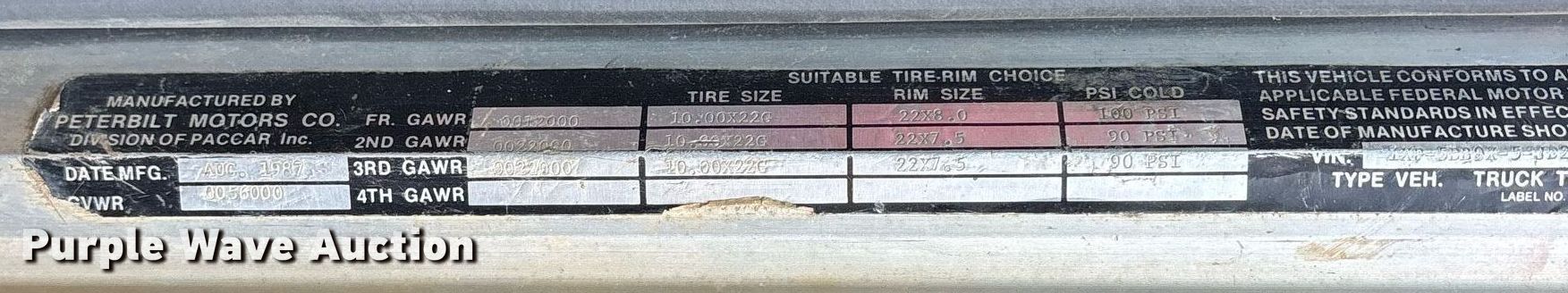 Purple Wave is selling a used Construction Dump Truck in Oklahoma. This item is a 1988 Peterbilt dump truck with the following: Miles: 89,733 on odometer, Actual mileage unknown, Hours: 3,202 on meter, VIN: 1XP5DB9X5JD253393