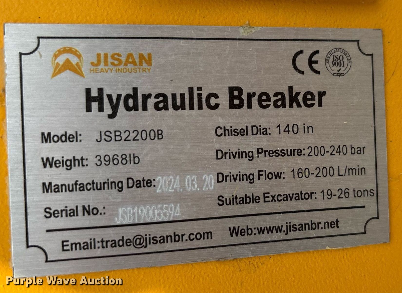 2024 Jisan JSB2200B breaker. Serial: JSB19005594. Notes Unknown operating condition. Grand Prairie, TX 75050