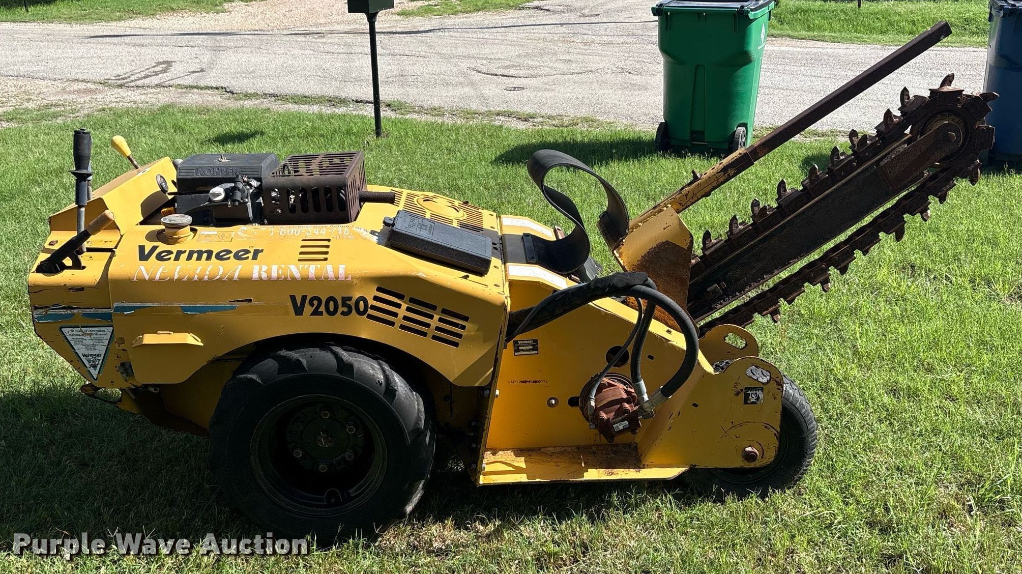 Purple Wave is selling a used Trencher or Rock Saw in Texas. This item is a 2000 Vermeer V2050 trencher with the following: Hours: 891 on meter, Serial: 1VRT081A0Y1000590