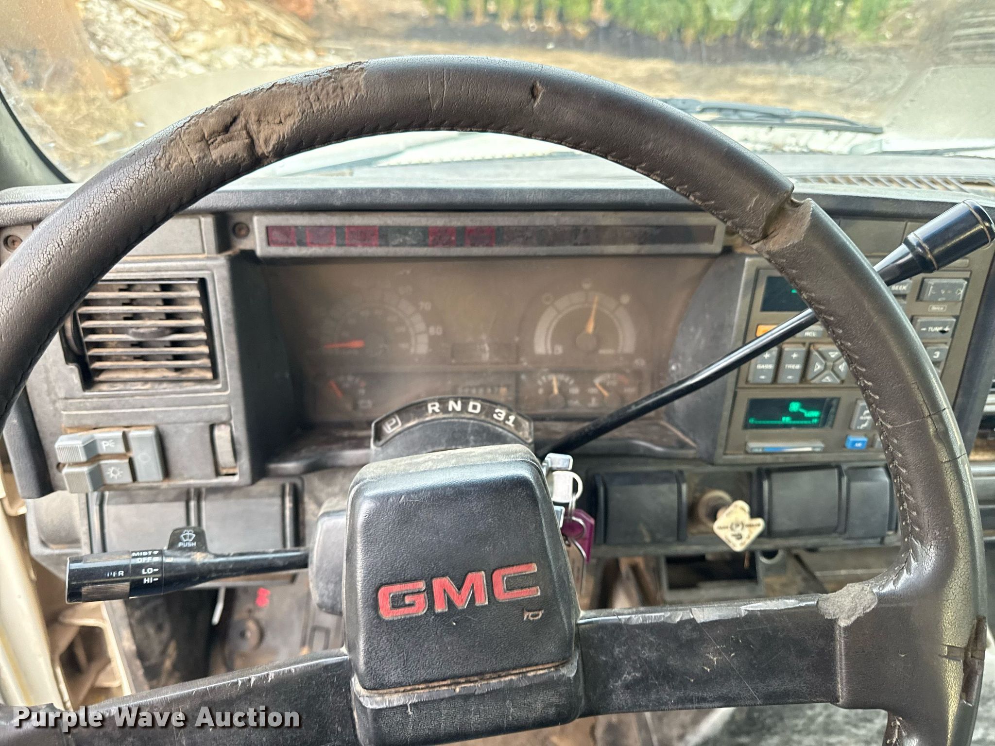 This 1995 GMC Topkick C6500 flatbed truck will sell to the highest bidder regardless of price.
