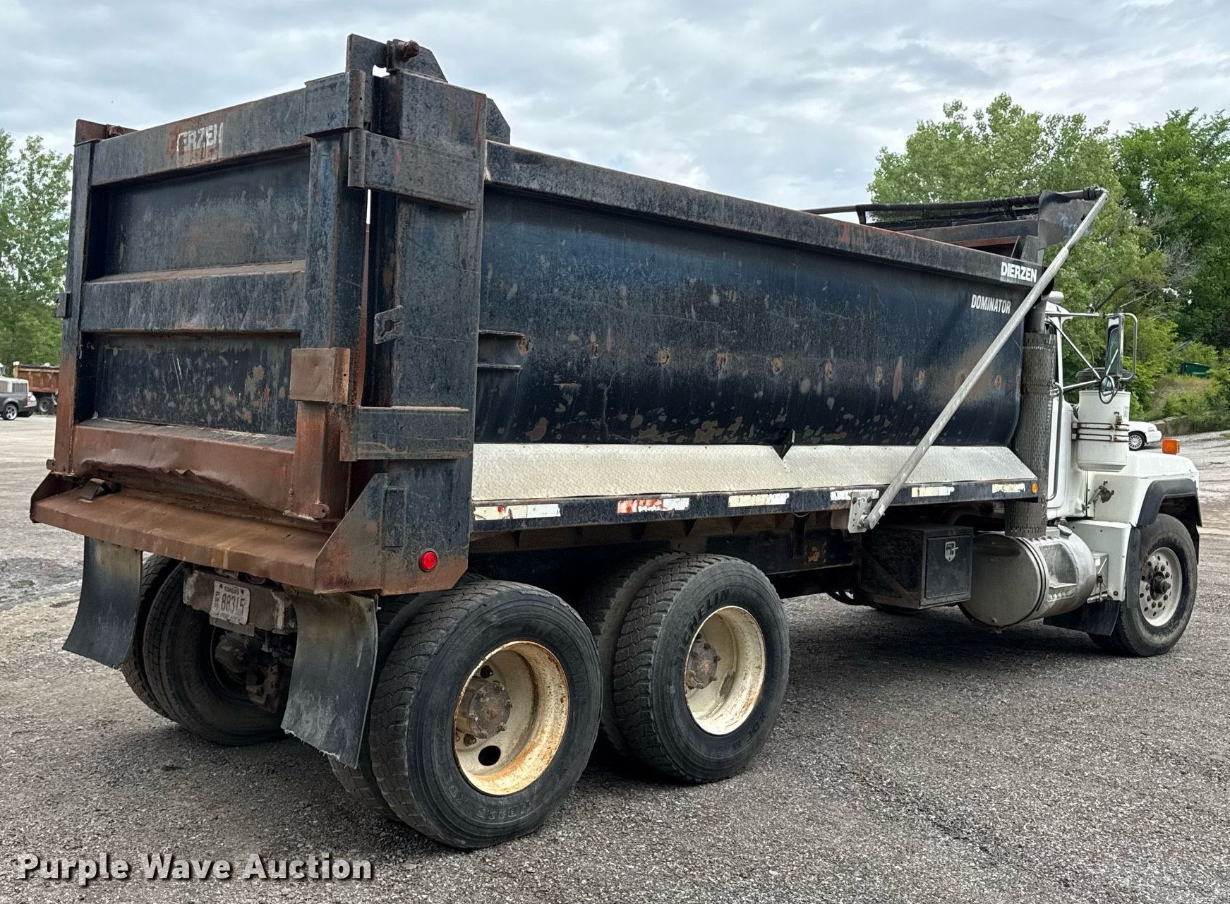 1995 Mack RD6885 dump truck. Miles: 444,198 on odometer, VIN: 1M2P267C9SM023375. Engine Mack, Cylinders: 6, Fuel type: Diesel. Transmission Eaton fuller, Manual. Chassis Double frame, Axles: Tandem, Differential lock: Inter-axle, Suspension: Camelback, Brakes: Air, PTO. Interior AC, Heat. Features Dump bed Dierzen, 16' L x 102" W, Side height: 60", Bed type: Steel, Barrel, Roll tarp, Ram: Single, End gate: Air operated. Tires Front: 425/65R22.5, Rear: 11R22.5. Kansas title. Title distribution may be delayed up to 14 days from verification of funds. Anderson and Son's Trucking. Edwardsville, KS 66111