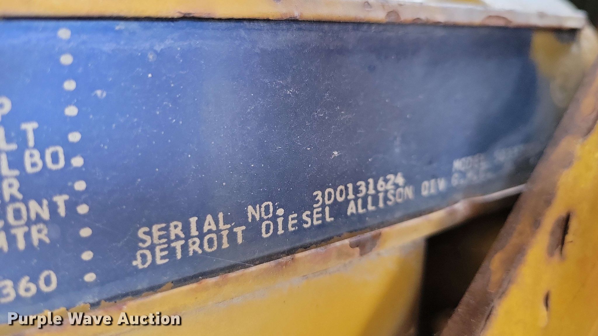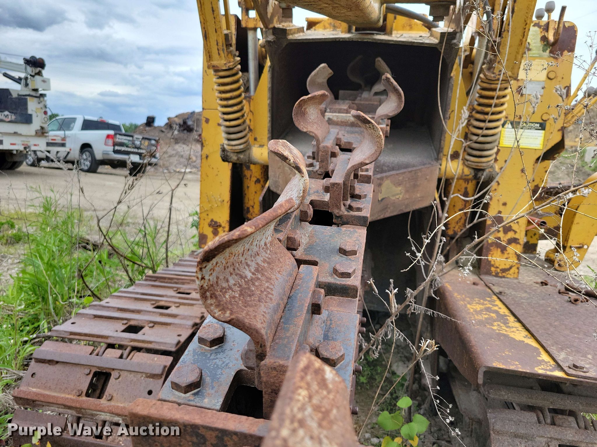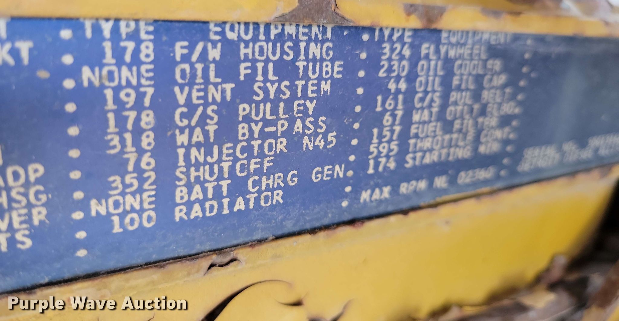 Vermeer T400B trencher. Hours: Unknown, Serial: 312. Engine Detroit 4-53, Serial: 3D0131624, Displacement: 192 C.I.D., Cylinders: 4, Fuel type: Diesel, HP: 81. Transmission Manual, 4F. Features Trencher Estimated dig depth: 120", Not exact, Cutting width: 9", Teeth: Dirt, Crumber, hydraulic crumber, Conveyor Width: 18", Length: 78". Tracks Width: 15", Steel. Notes Unknown operating condition. TK Concrete Inc. Pella, IA 50219