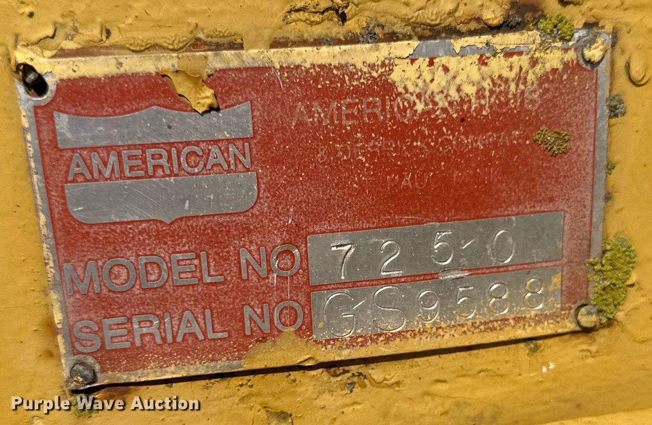 1964 American 7150 crane. Hours: Unknown, Serial: GS9588. Engine Cylinders: 6, Fuel type: Diesel. Transmission Direct-drive. Chassis Brakes: Air, Propulsion: Mechanical, Controls: Air actuated. Operators station Enclosed cab, Crane controls: Stick. Features Lattice, Maximum boom length: 60', Drag line bucket Approximately: 3' x 6'. Tracks Width: 43". Notes Non-operational unit. Hansen's Harbor. Lake City, MN 55041