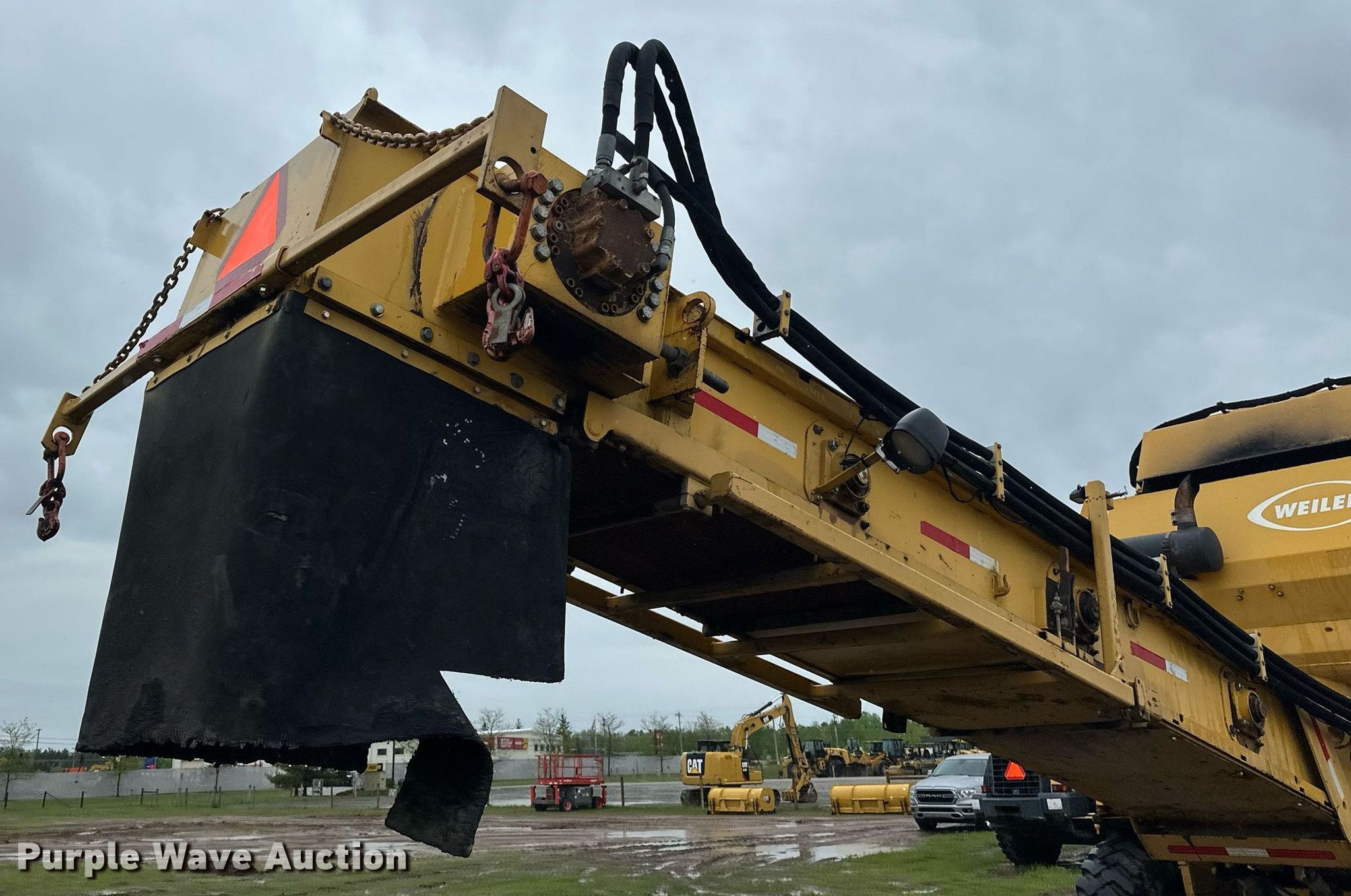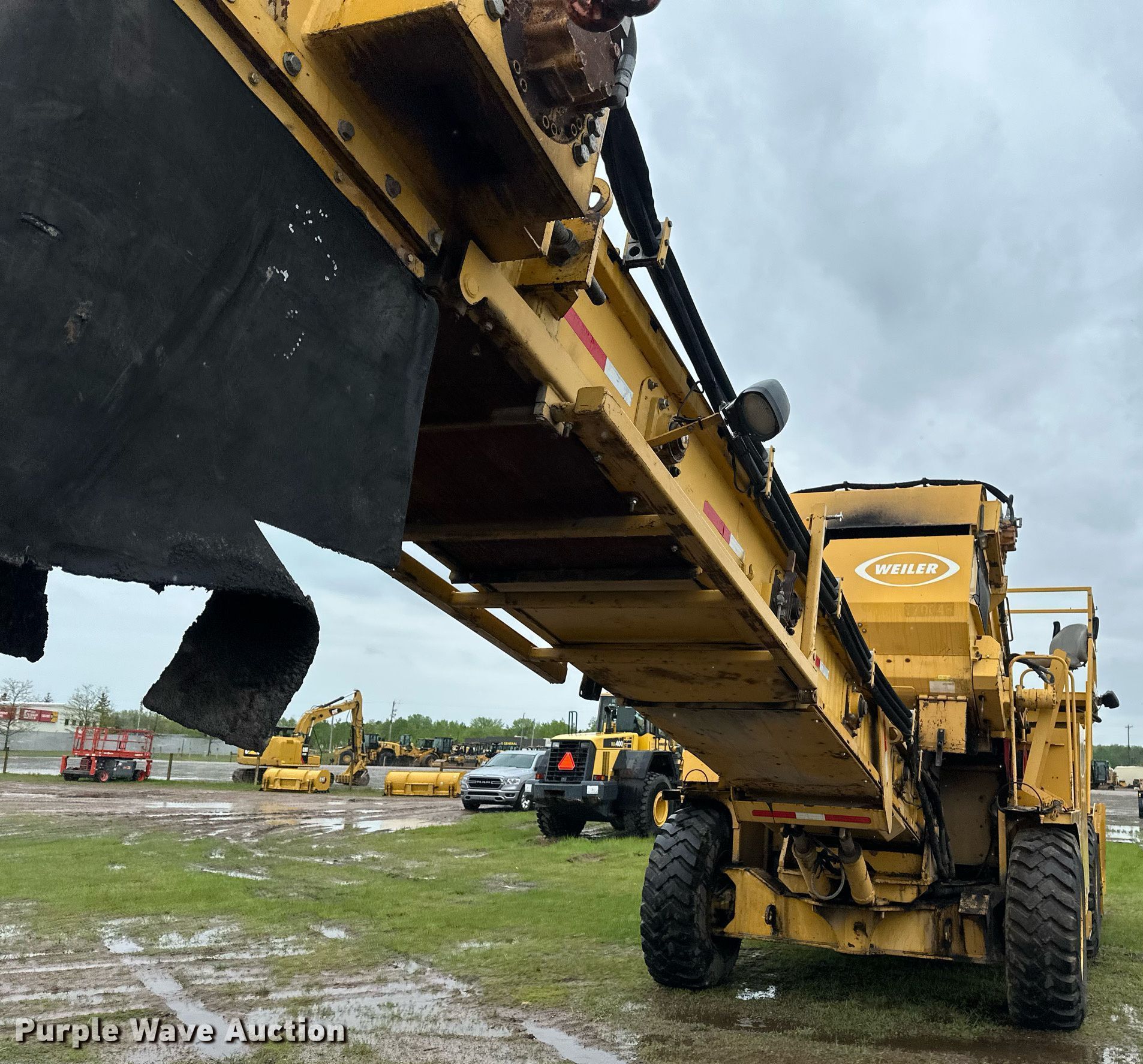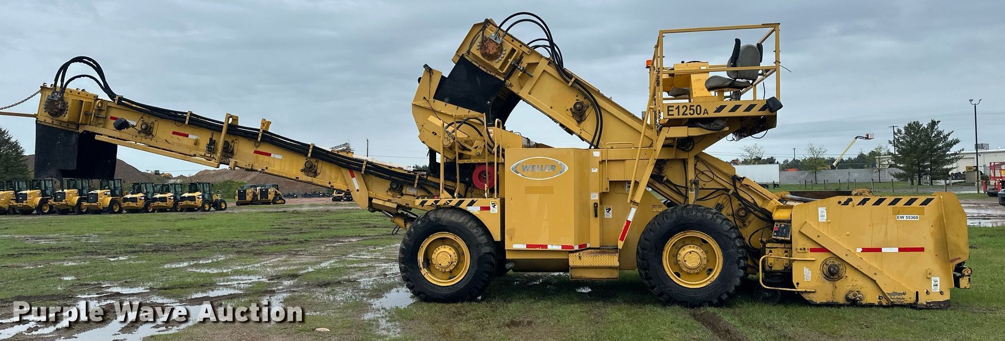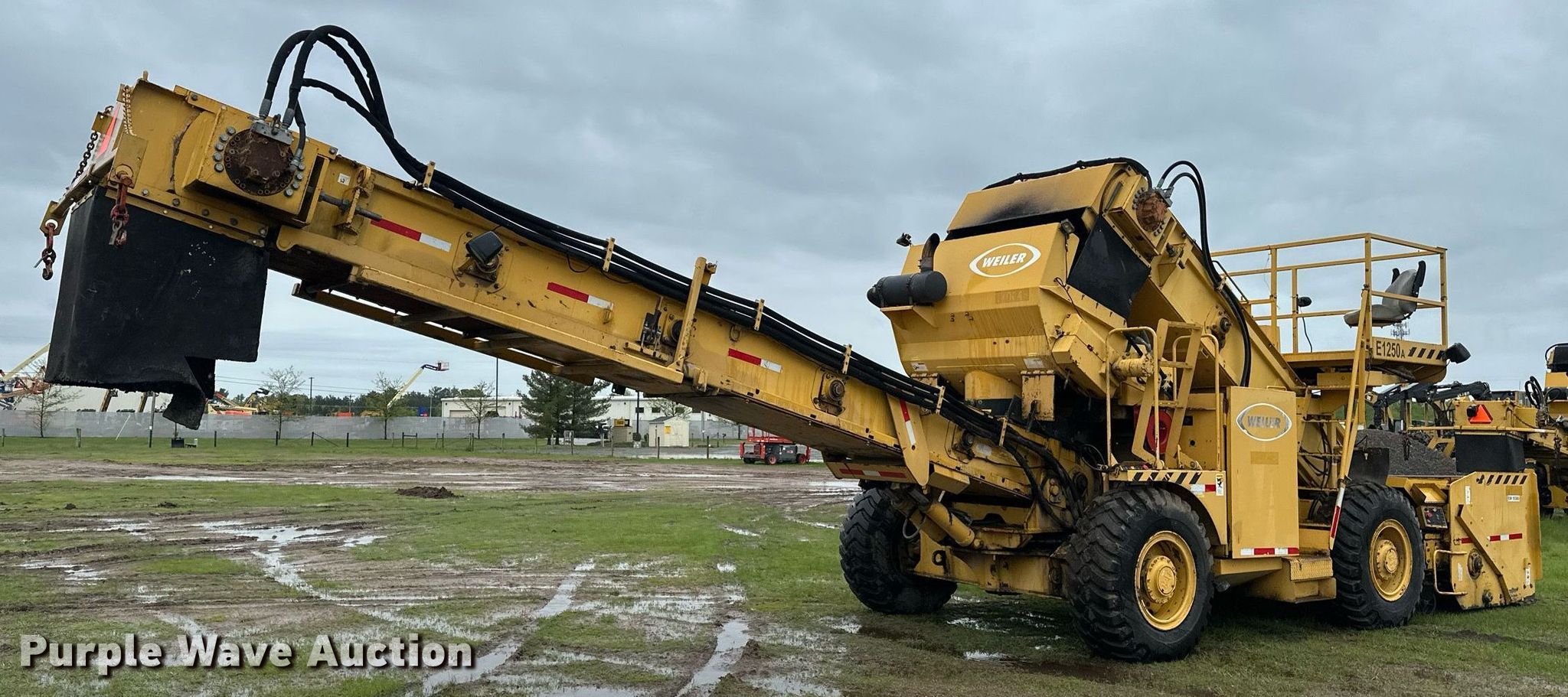2009 Weiler E1250A material transfer vehicle. Hours: 5,754 on meter, Serial: A-1055. Engine Caterpillar C7, Cylinders: 6, Fuel type: Diesel. Transmission Hydrostatic. Features Cutting head Width: 10", Water/emulsion application system, Ground controls, Discharge conveyor 23' 6" L x 2' W. Tires Size: 17.5-25, Brand: Firestone. Inventory Reduction. Weston, WI 54476