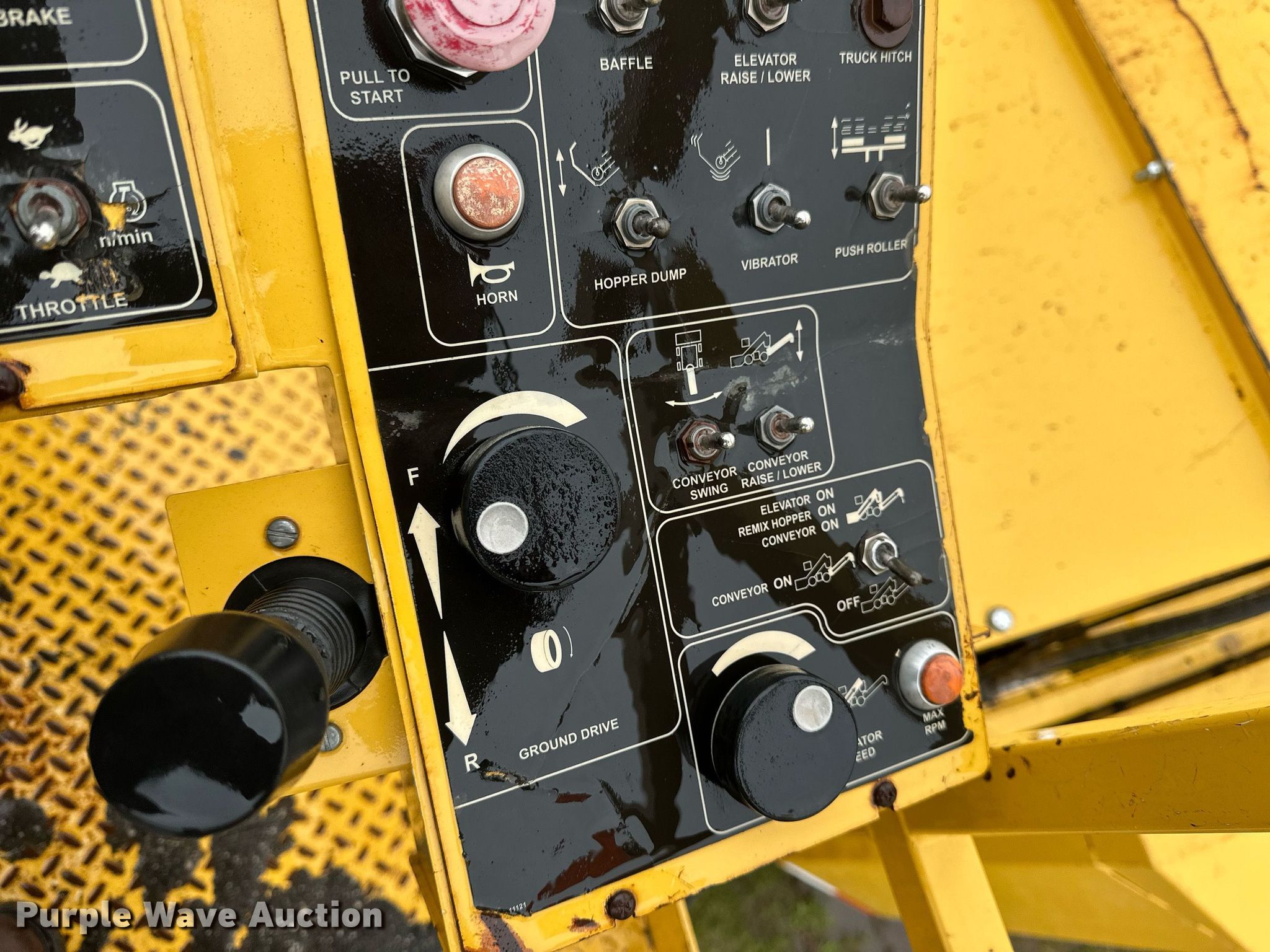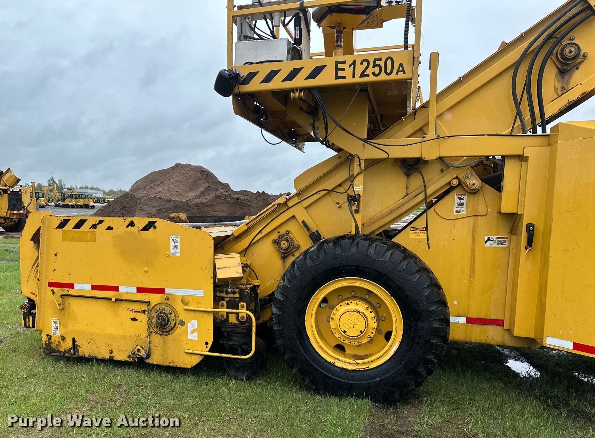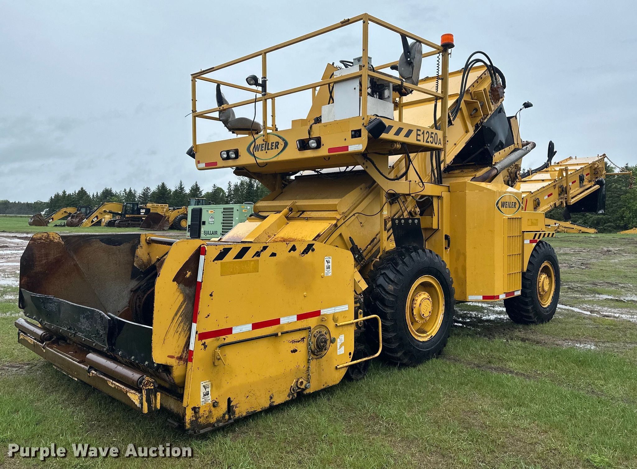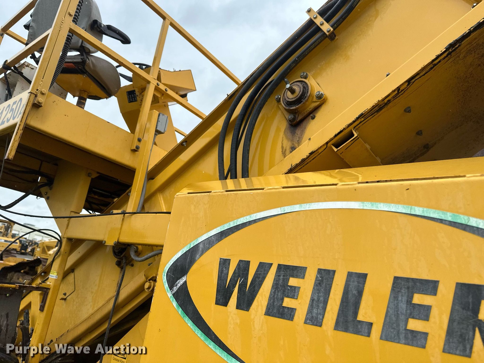 2009 Weiler E1250A material transfer vehicle. Hours: 5,754 on meter, Serial: A-1055. Engine Caterpillar C7, Cylinders: 6, Fuel type: Diesel. Transmission Hydrostatic. Features Cutting head Width: 10", Water/emulsion application system, Ground controls, Discharge conveyor 23' 6" L x 2' W. Tires Size: 17.5-25, Brand: Firestone. Inventory Reduction. Weston, WI 54476