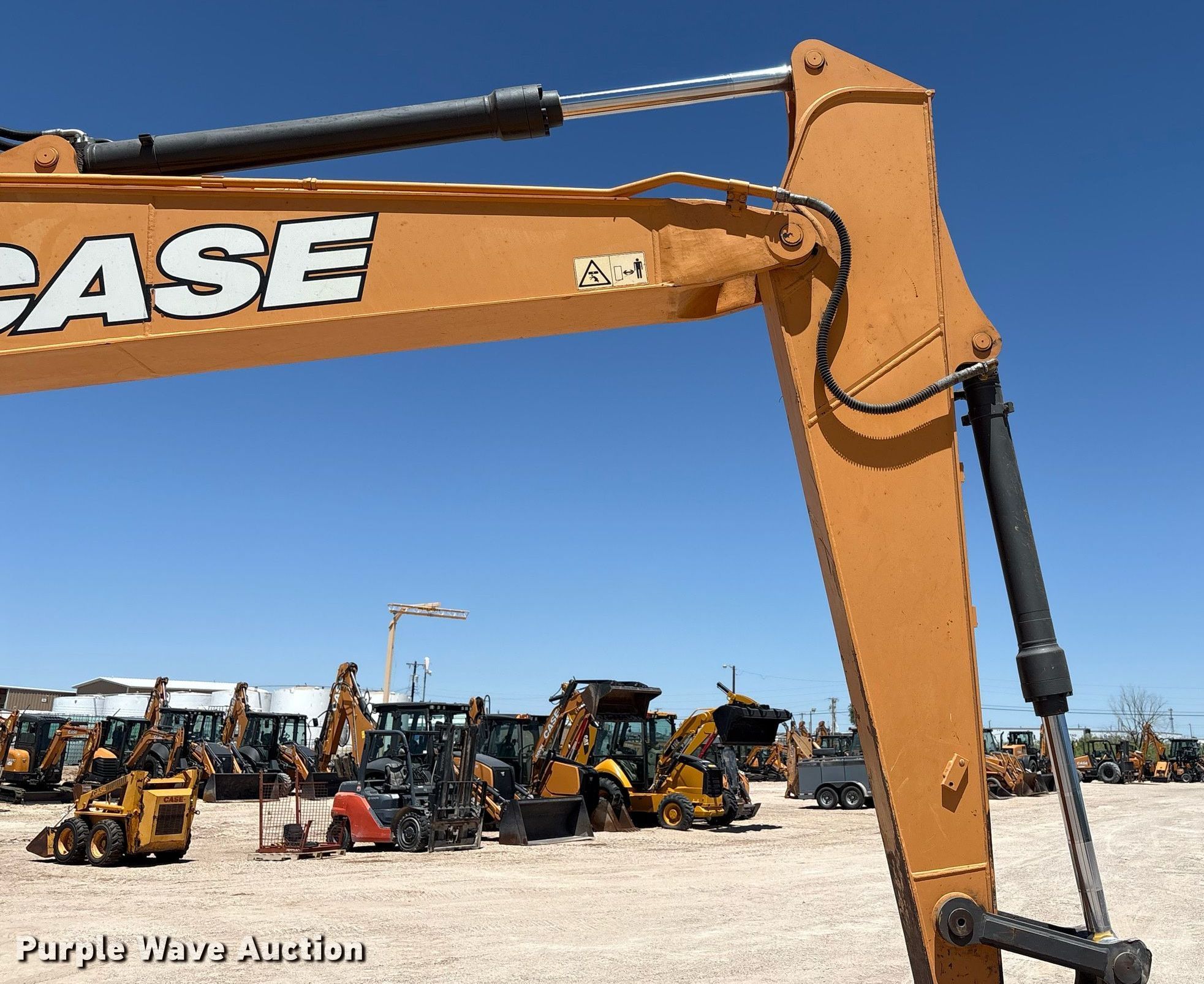 2019 Case CX210D excavator. Hours: 3,338 on meter, Serial: DAC210K7NKS7H2098. Engine Isuzu AR-4HKIX, Displacement: 5.193L, Cylinders: 4, Fuel type: Diesel. Transmission Hydrostatic, Two speed travel. Operators station Enclosed cab, AC, Heat, Backup camera, Pattern changer. Features Auxiliary hydraulics, Counter weights, Boom Standard, Stick Stick length: 10', Bucket Width: 35", Teeth: 5. Tracks Width: 31", Steel. Permian Tractor Sales, Inc.. Odessa, TX 79762