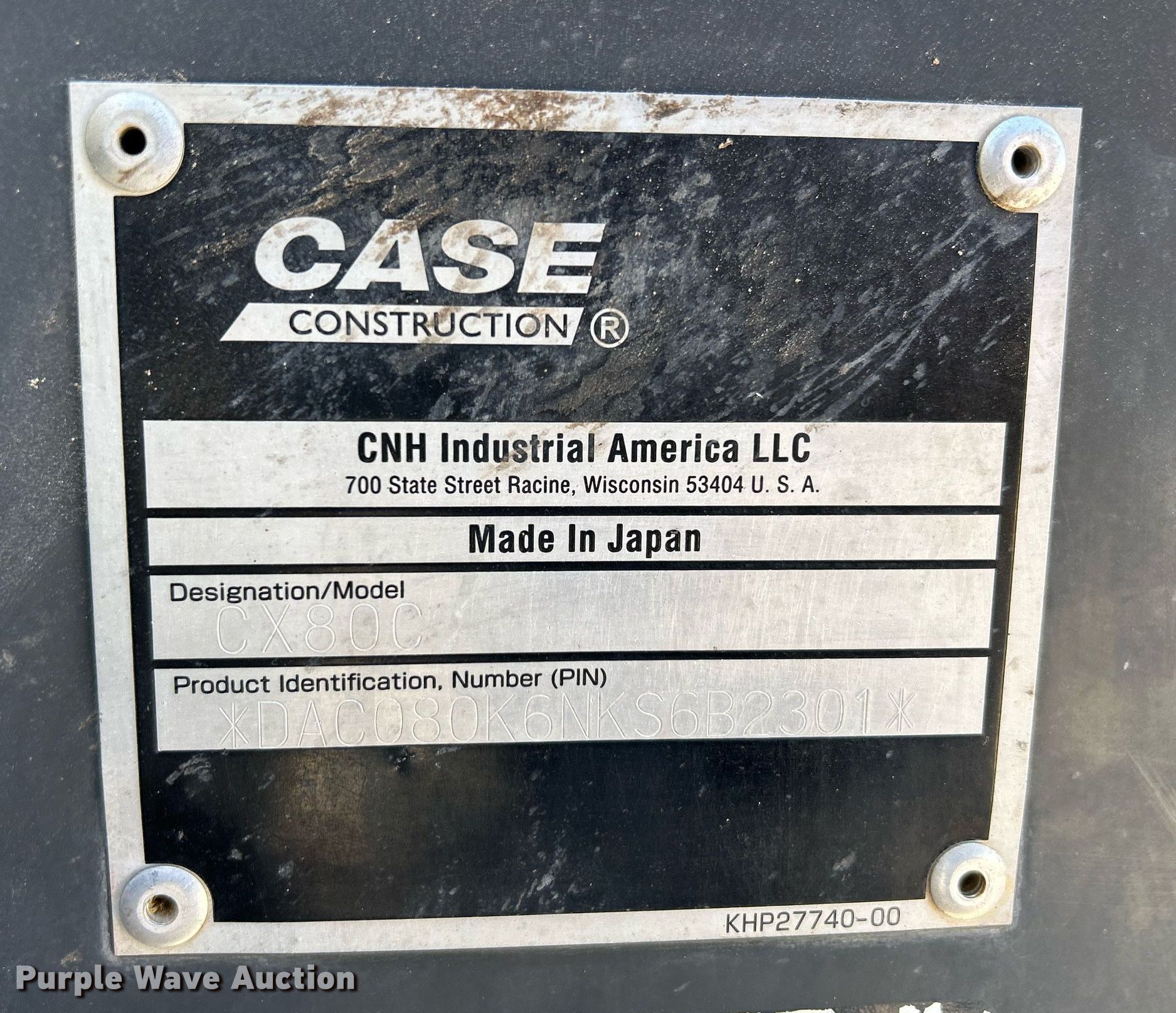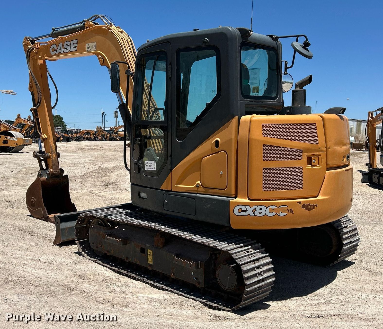 Purple Wave is selling a used Mini Excavator in Texas. This item is a 2019 Case CX80C mini excavator with the following: Hours: 1,812 on meter, Serial: DAC080K6NKS6B2301