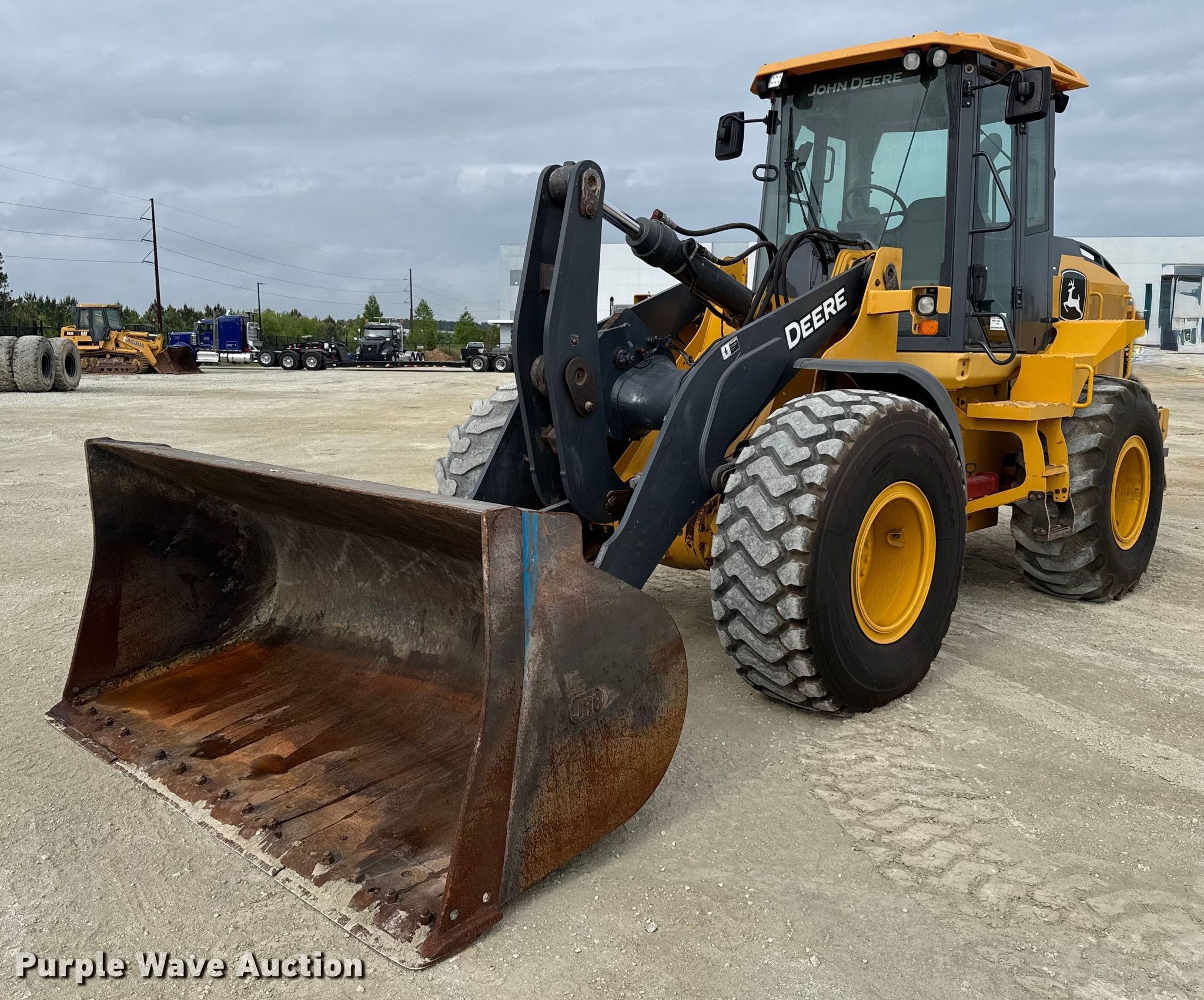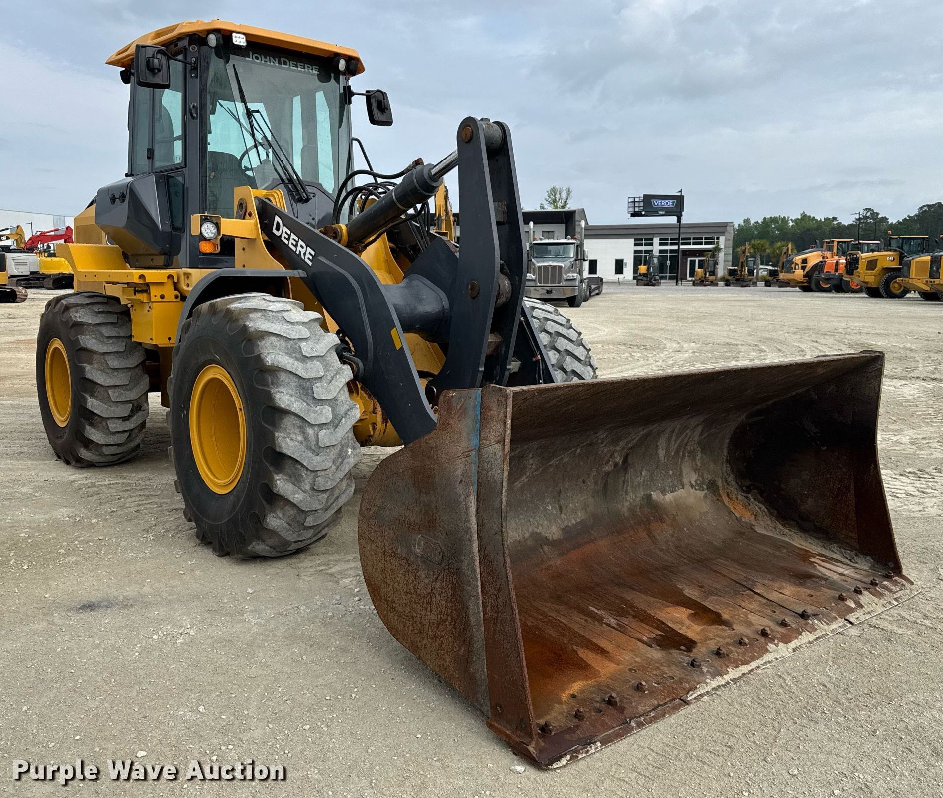 2019 John Deere 544L wheel loader. Hours: 3,197 on meter, Serial: 1DW544LZKKF695146. Engine John Deere 6068DW501, Displacement: 6.8L, Cylinders: 6, Fuel type: Diesel. Transmission Powershift. Operators station Enclosed cab, AC, Heat, Bucket controls: Joystick, Ride control. Features Auxiliary hydraulics: Front, Quick coupler: Hydraulic, Counter weights, Bucket JIB 721F, Width: 106", Cutting edge: Bolt-on. Tires Size: 20.5-25. Summerville, SC 29483
