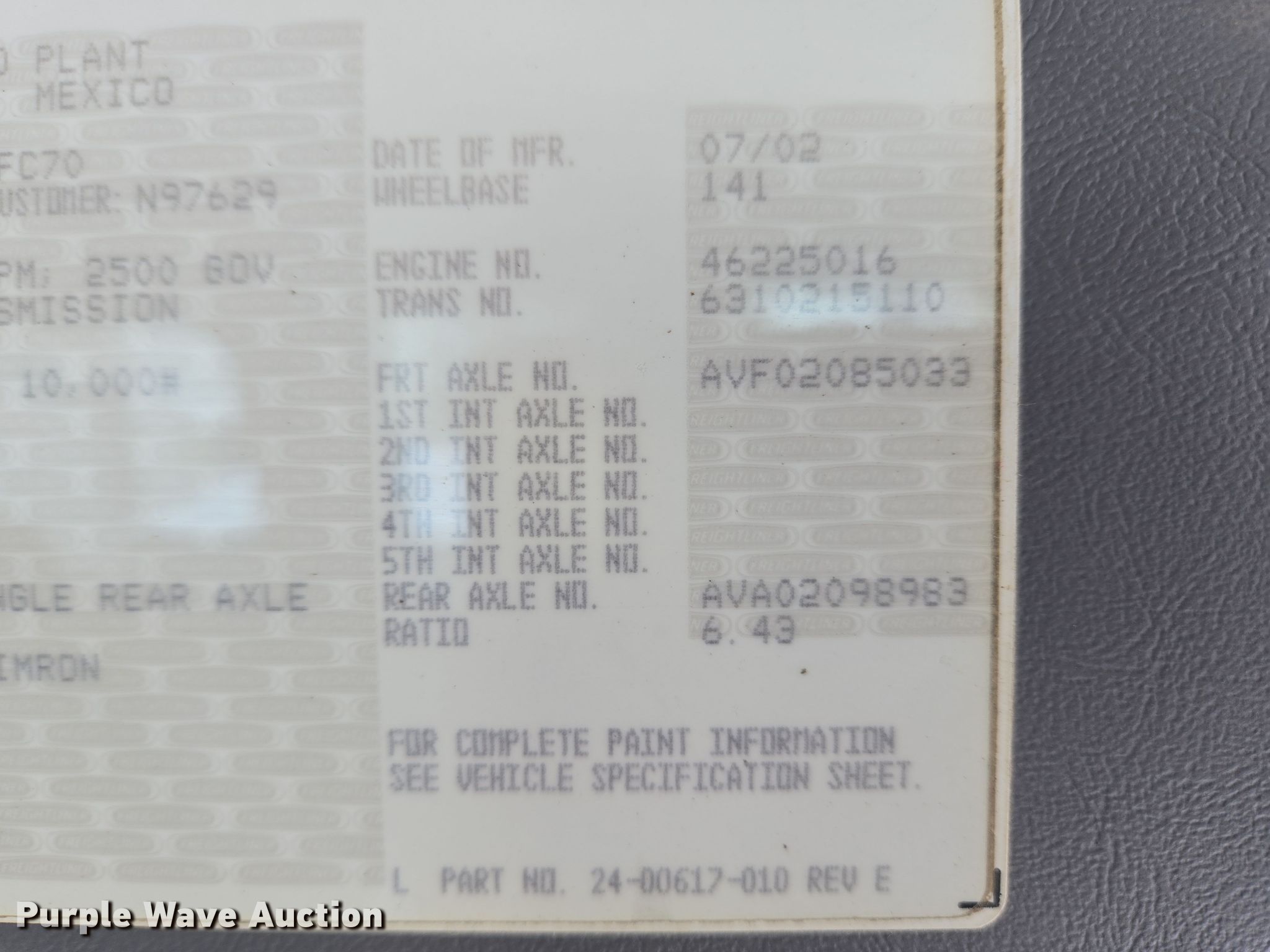 2003 Freightliner FC70 street sweeper truck has sold in Orion Township, Michigan for $1705. Item EC4012 sold on June 19th, 2025.