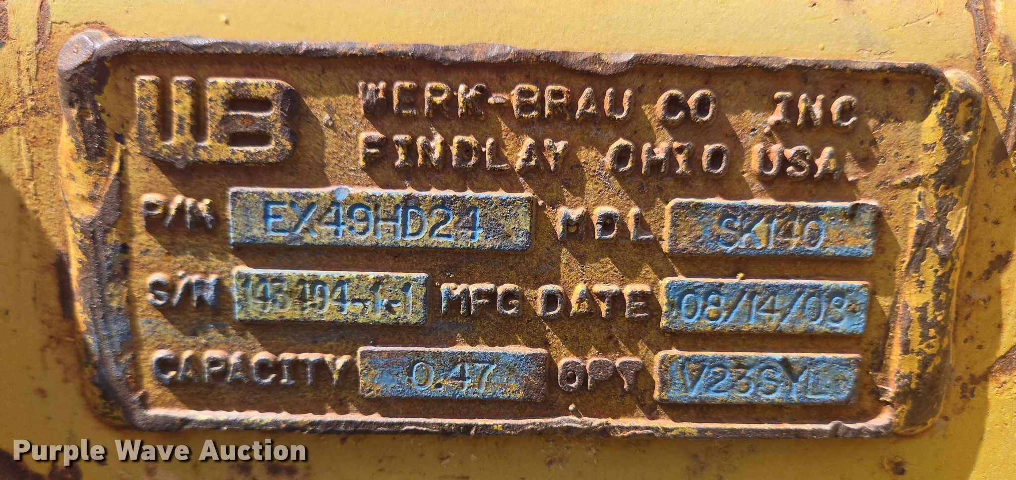 2009 Kobelco SK-140SRLC excavator. Hours: 5,549 on meter, Serial: YH05-07886. Engine Mitsubishi, Displacement: 4.2L, Fuel type: Diesel. Transmission Hydrostatic, Two speed travel. Operators station Enclosed cab, AC, Heat. Features Auxiliary hydraulics, Counter weights, Boom Standard, Stick Stick length: 9' 3", WB bucket Width: 42", Teeth: 5, WB bucket Width: 24", Teeth: 4. Tracks Width: 23.5", Steel, Grouser pads: Triple. Fort Wayne, IN 46809