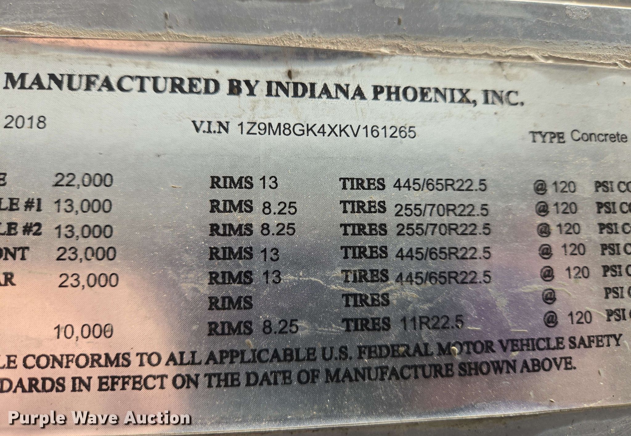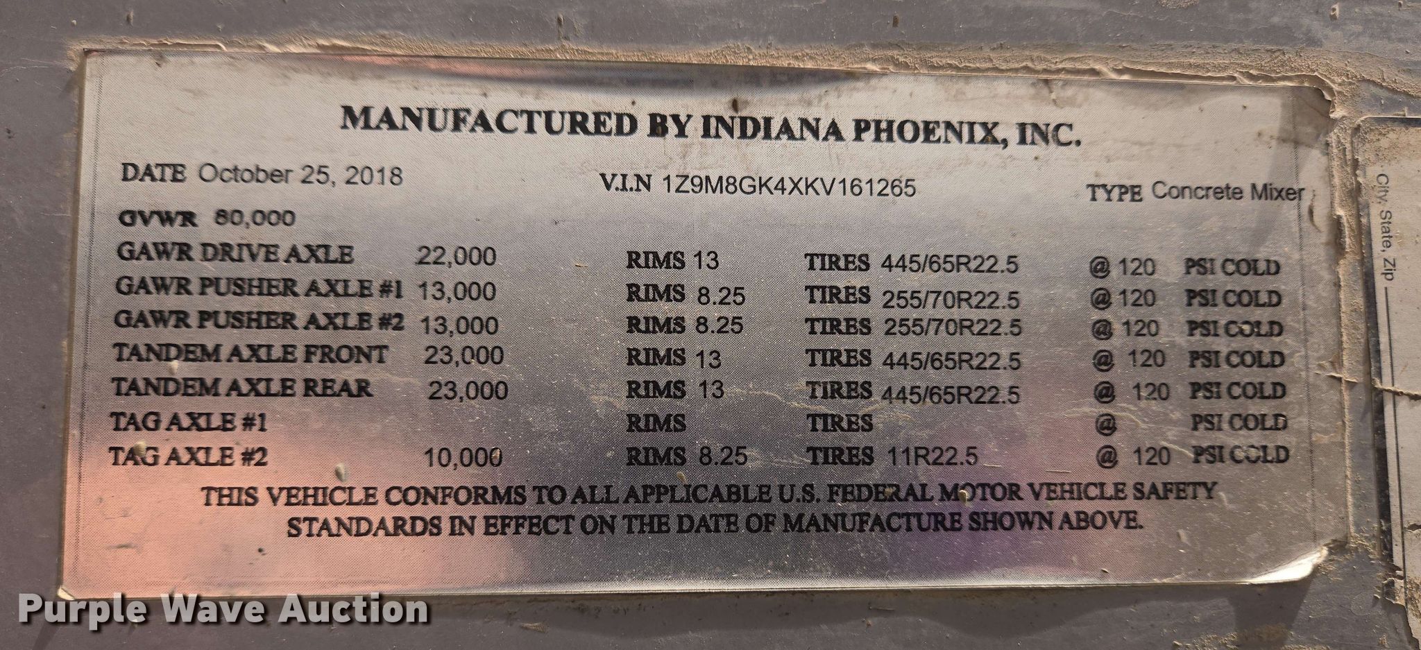 Purple Wave is selling a used Ready Mix or Pump Truck in Ohio. This item is a 2019 Indiana Phoenix INC Mixer ready mix truck with the following: Miles: 967,316 on odometer, VIN: 1Z9M8GK4XKV161265