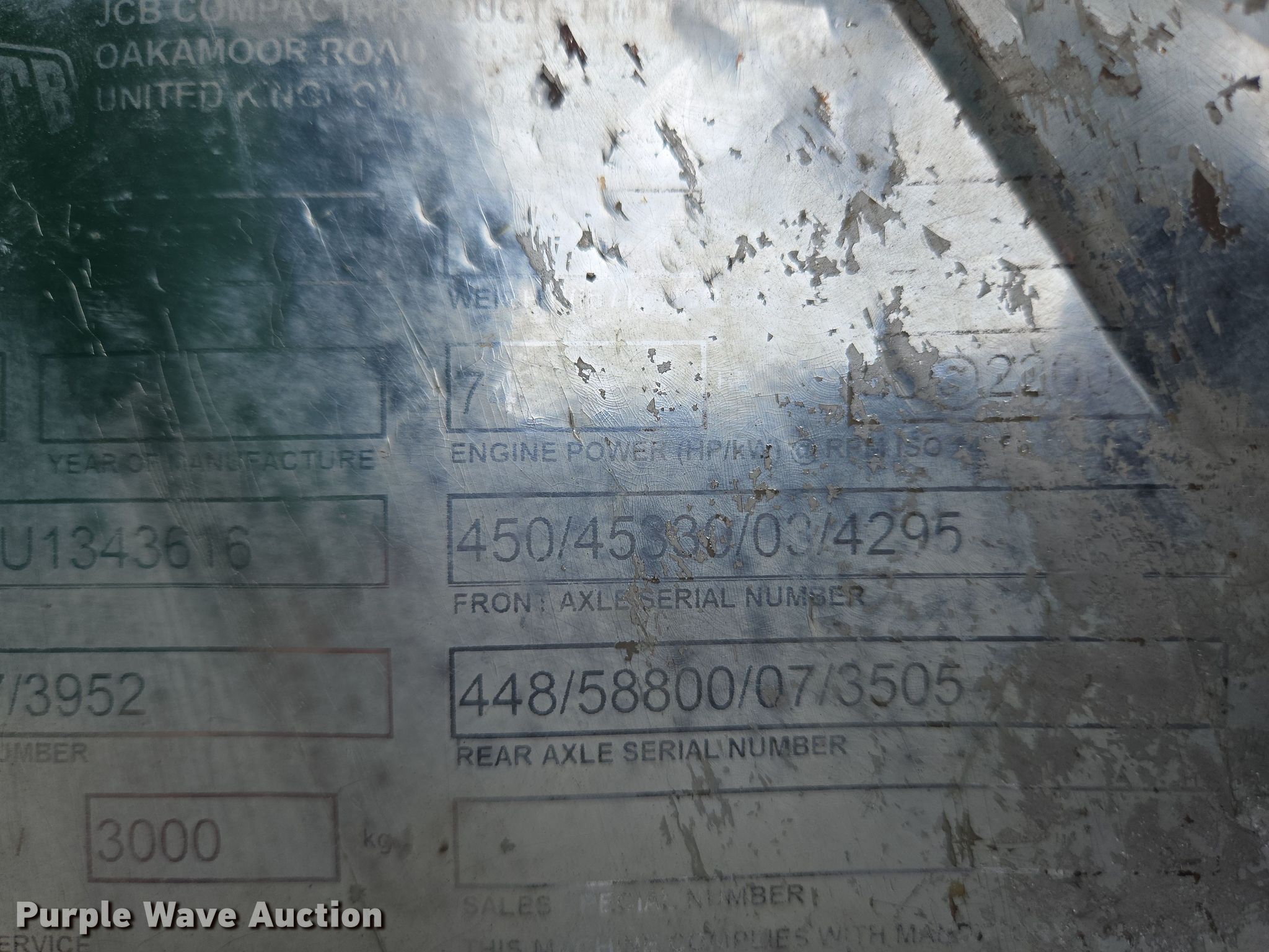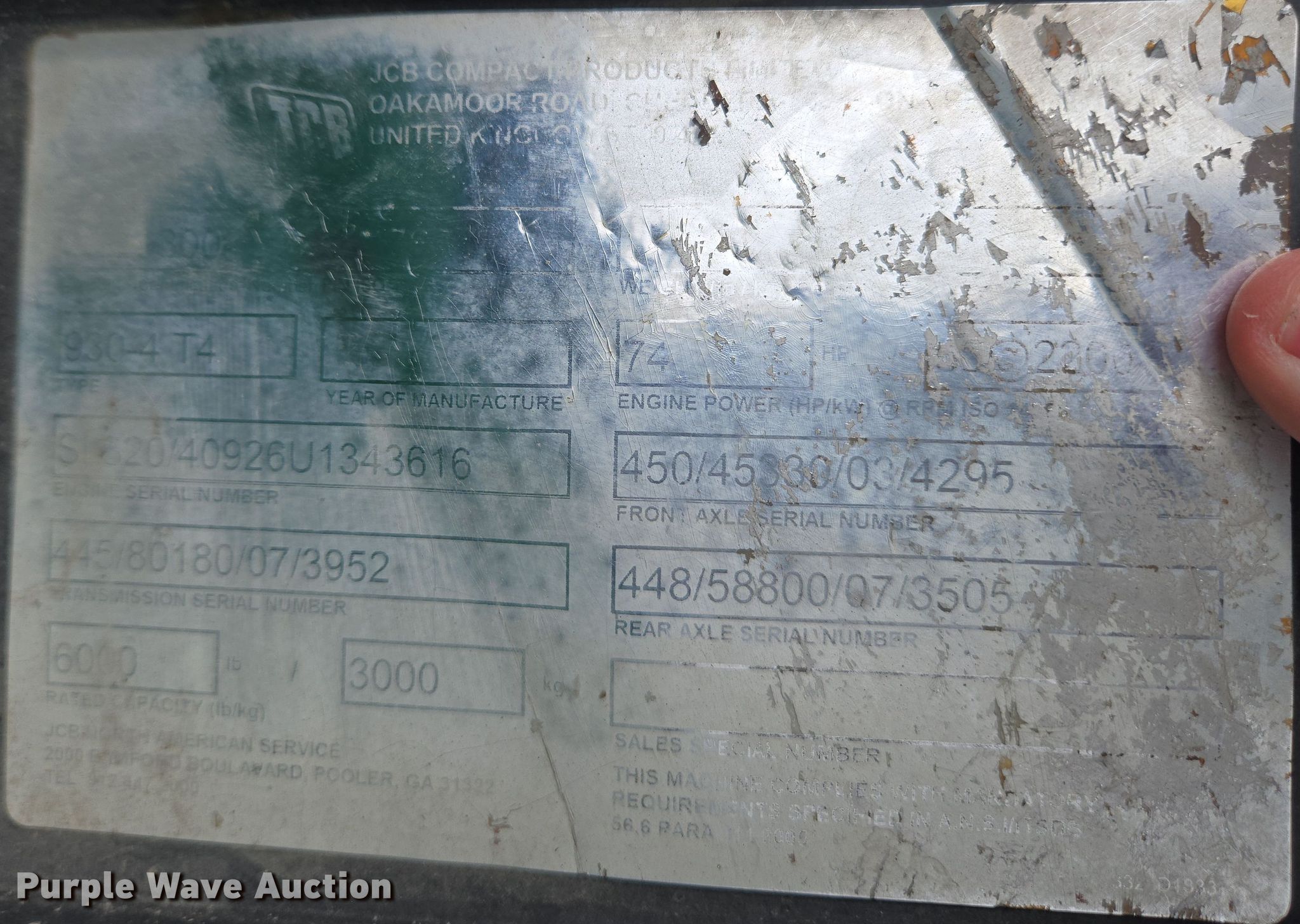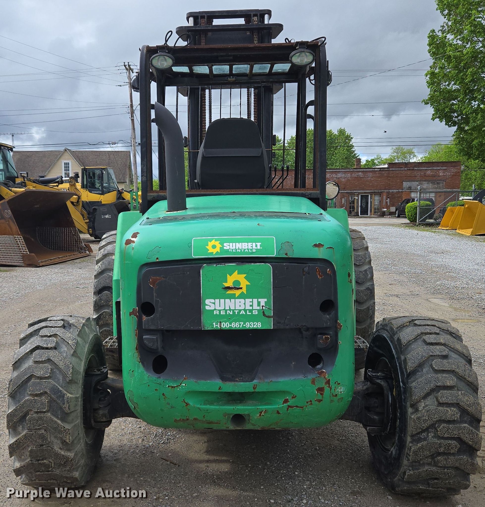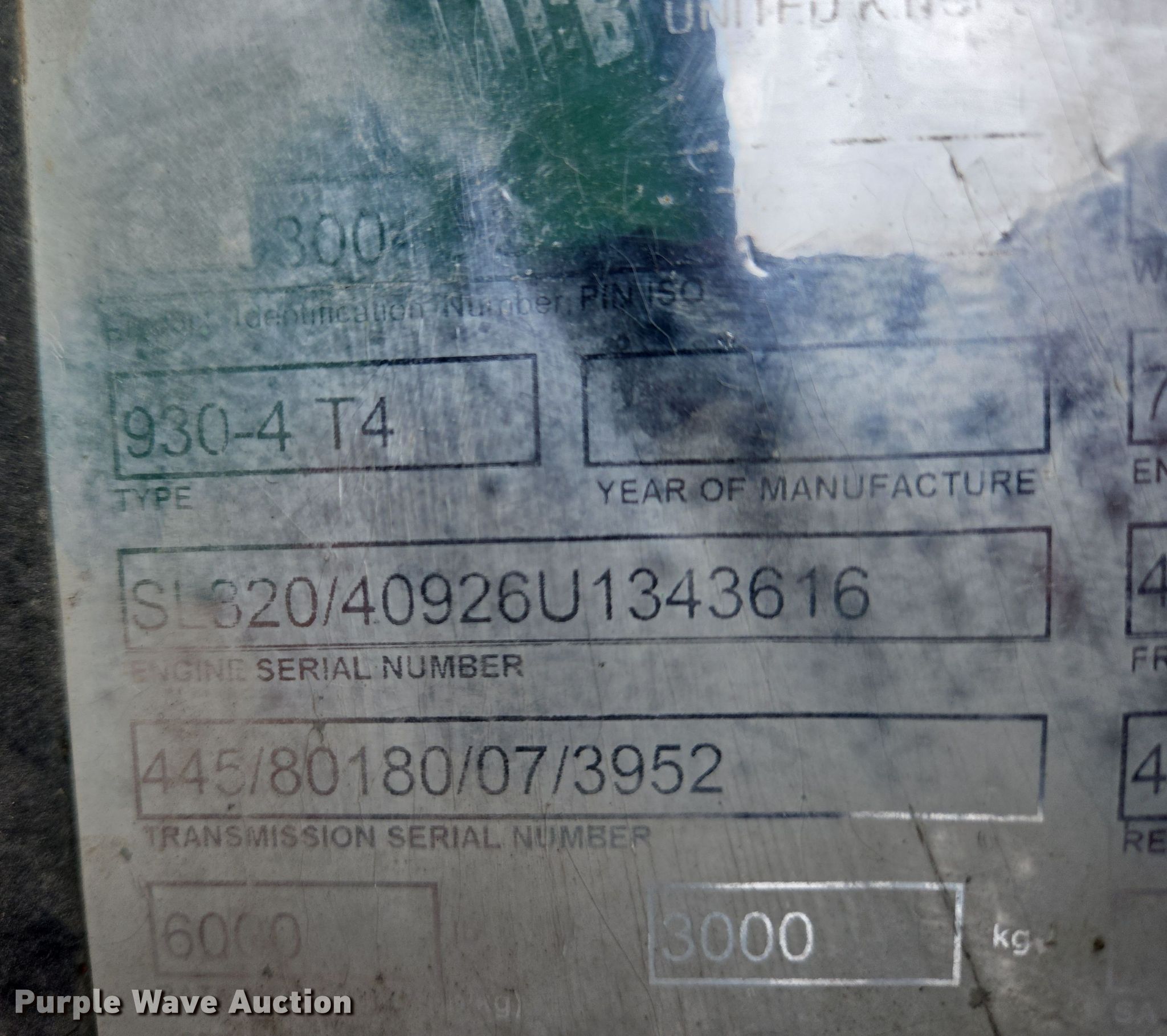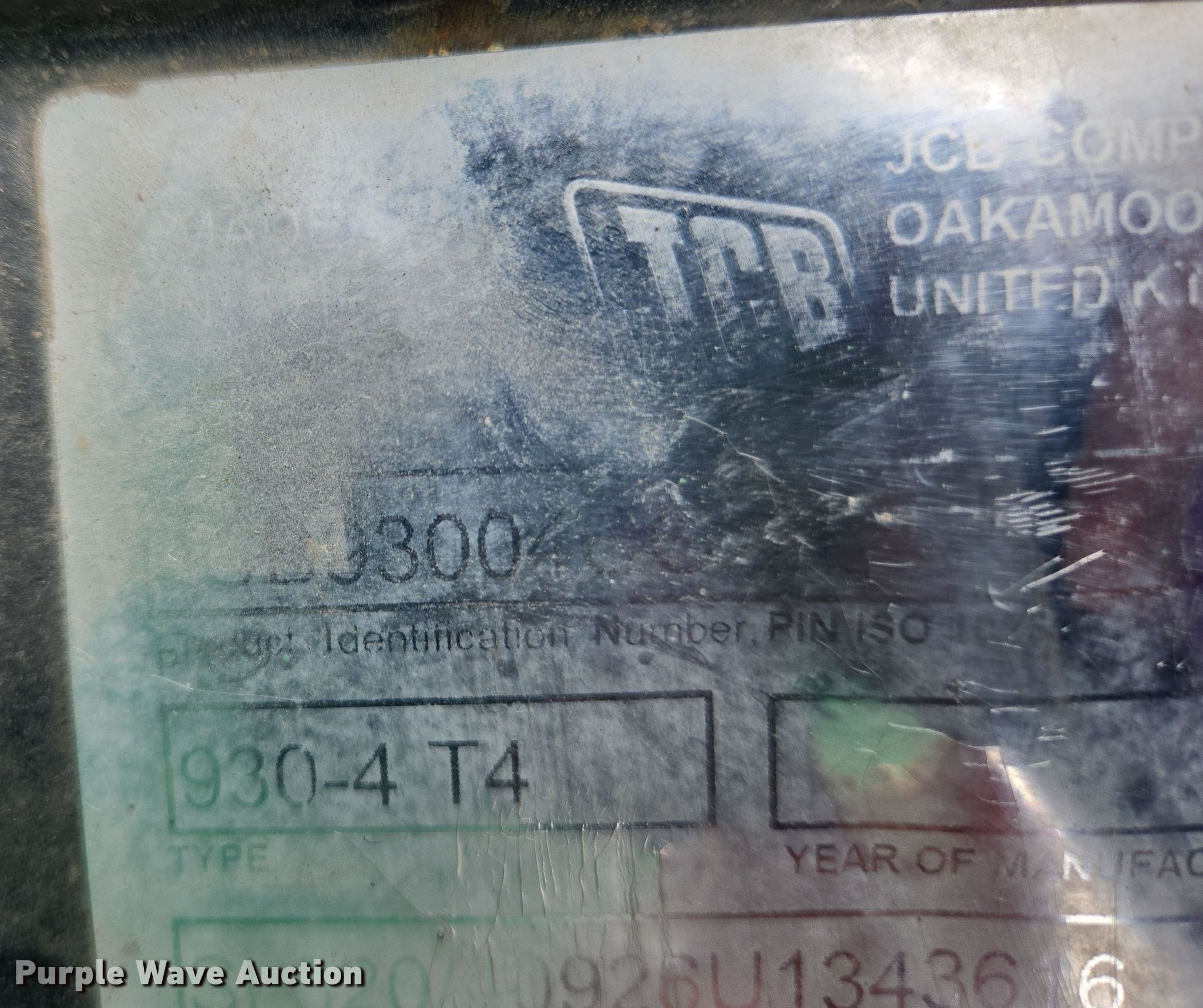 JCB 930 forklift. Hours: 3,596 on meter. Engine Cylinders: 4, Fuel type: Diesel. Chassis Four wheel drive. Operators station OROPS. Features Side shift, Mast tilt, Fork length: 60". Tires Front: 15 5-25, Rear: 14-17.5. Notes Throttle issues, unresponsive. Clark Heavy Equipment. Pleasureville, KY 40057