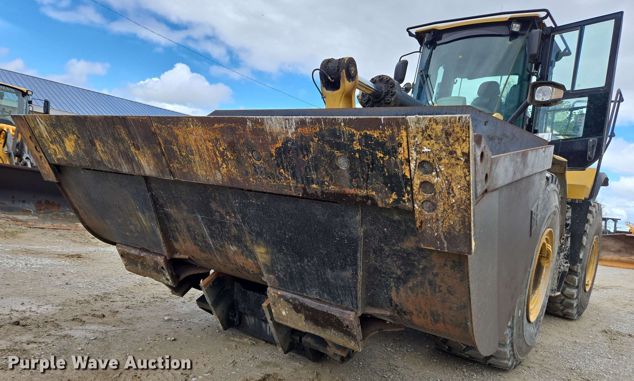 2012 Caterpillar 972K wheel loader. Hours: 20,604 on meter, Serial: CAT0972KCZ4W00247. Engine Caterpillar, Cylinders: 6, Fuel type: Diesel. Transmission Powershift. Operators station Enclosed cab, AC, Heat, Steering: Joystick, Bucket controls: Two-lever, Ride control. Features Auxiliary hydraulics: Front, Counter weights, Auto lube, Bucket Caterpillar, Capacity: 5.5 cu.yd., Cutting edge: Bolt-on. Tires Size: 26.5R25. Notes Glass cracked, Dash warning indicator: Regen. Clark Heavy Equipment. Pleasureville, KY 40057